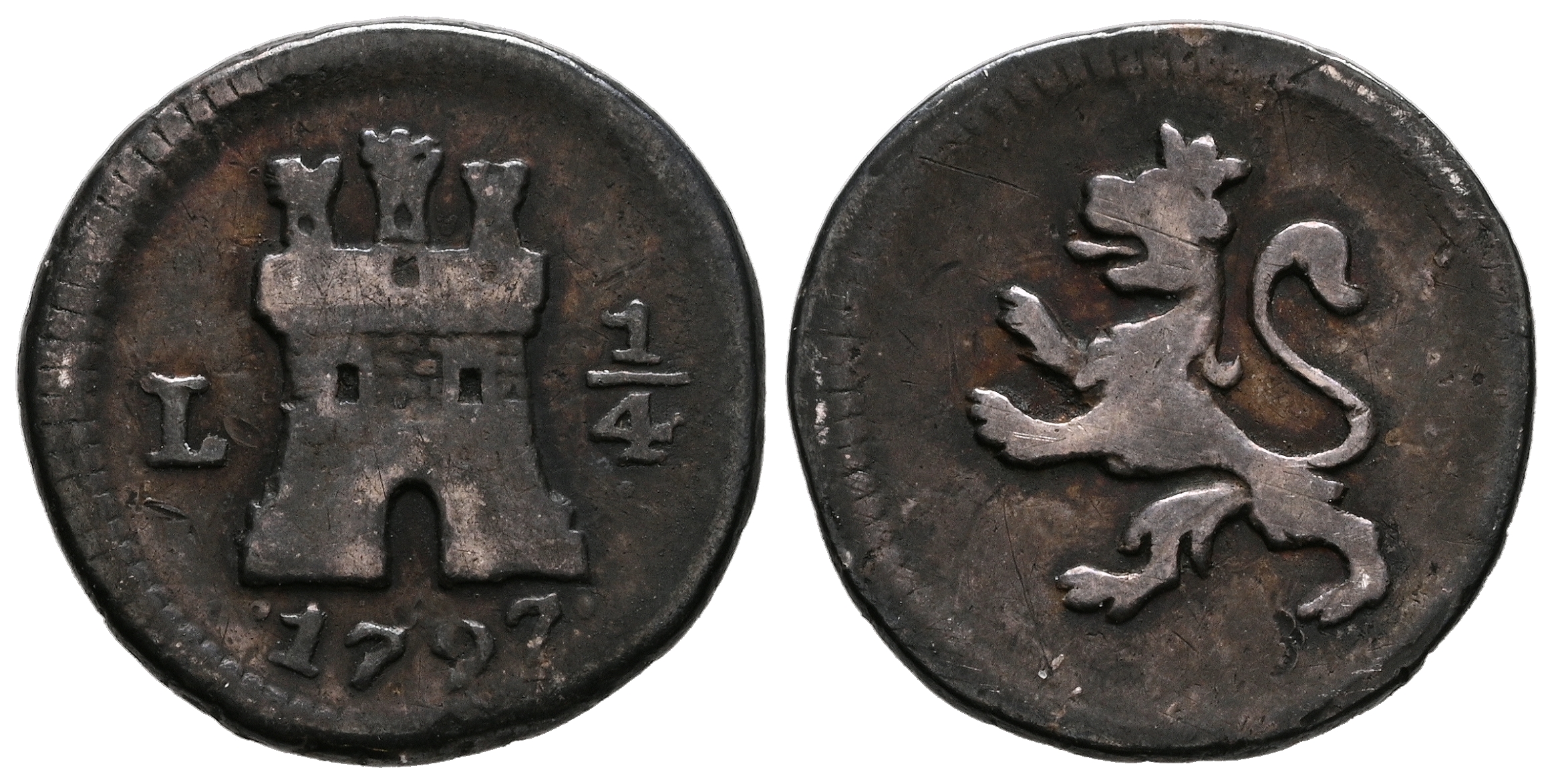 CARLOS IV (1788-1808). 1/4 Real (Ar. 0,71g/12mm). 1797. Lima. (Cal-2019-108). MBC. Pátina oscura. Escasa.