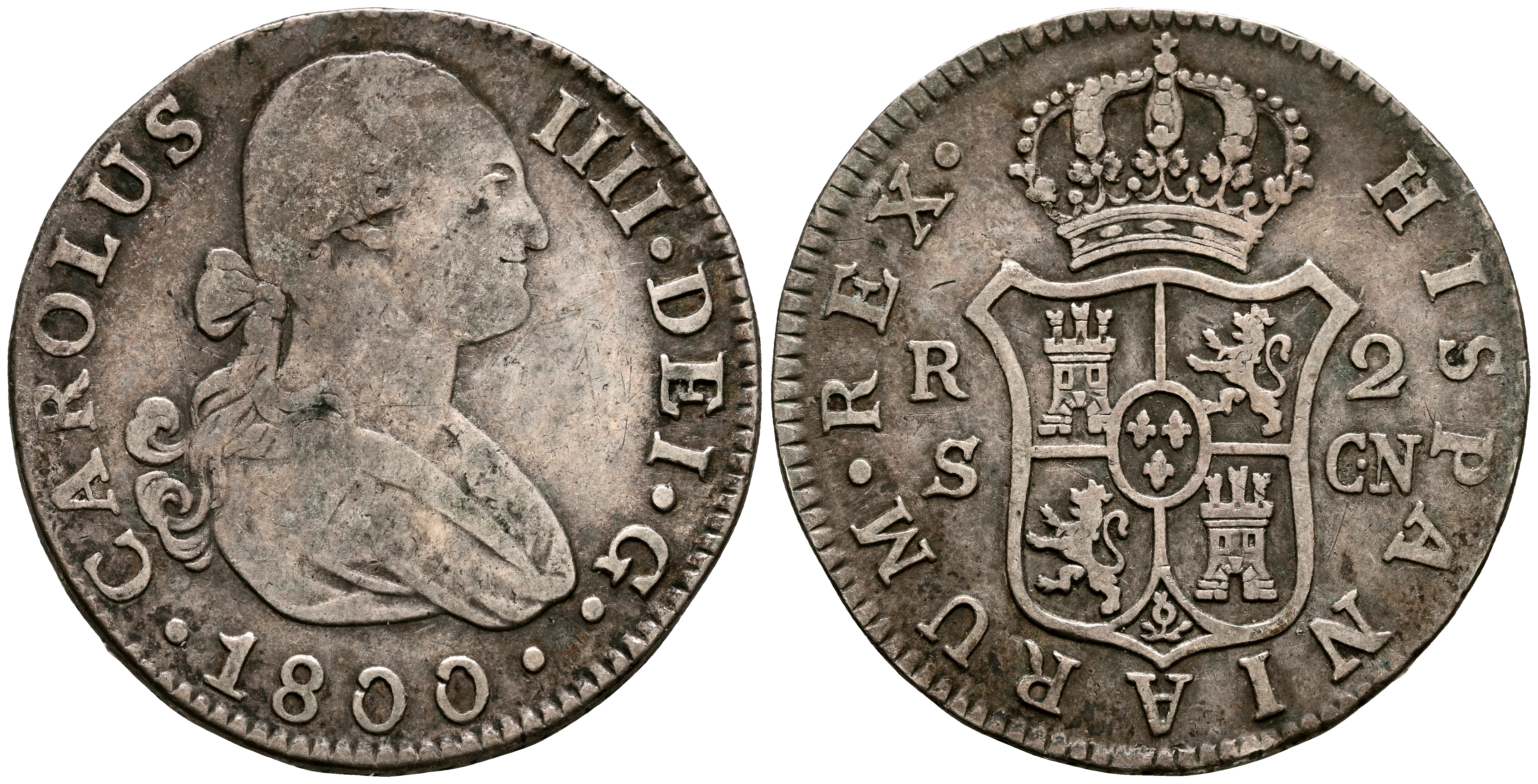 CARLOS IV (1788-1808). 2 Reales. (Ar. 5,79g/26mm). 1800. Sevilla CN. (Cal-2019-721). MBC-.