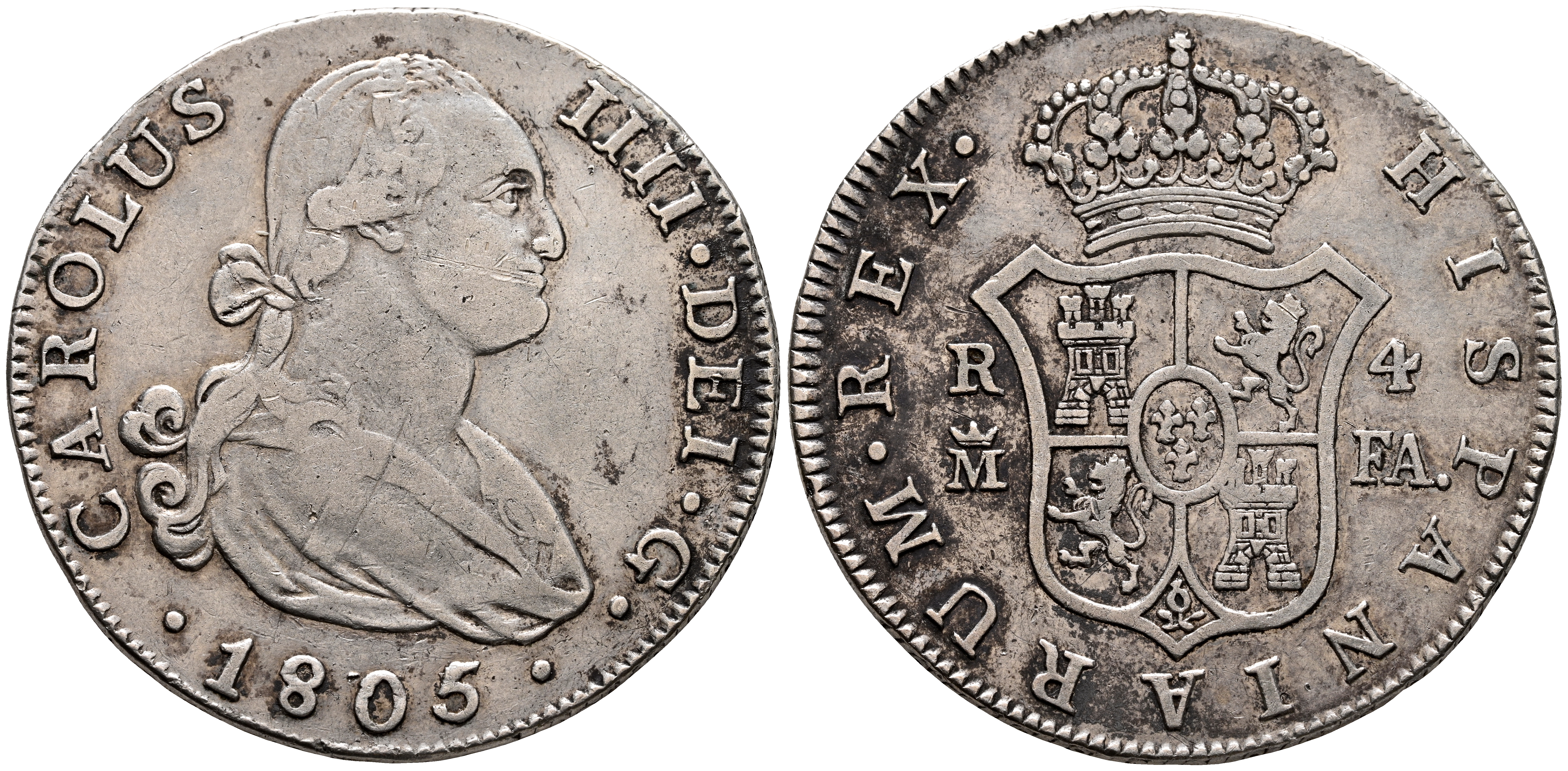 CARLOS IV (1788-1808). 4 Reales. (Ar. 13,89g/33mm). 1805. Madrid FA. (Cal-2019-786). MBC. Escaso ejemplar.