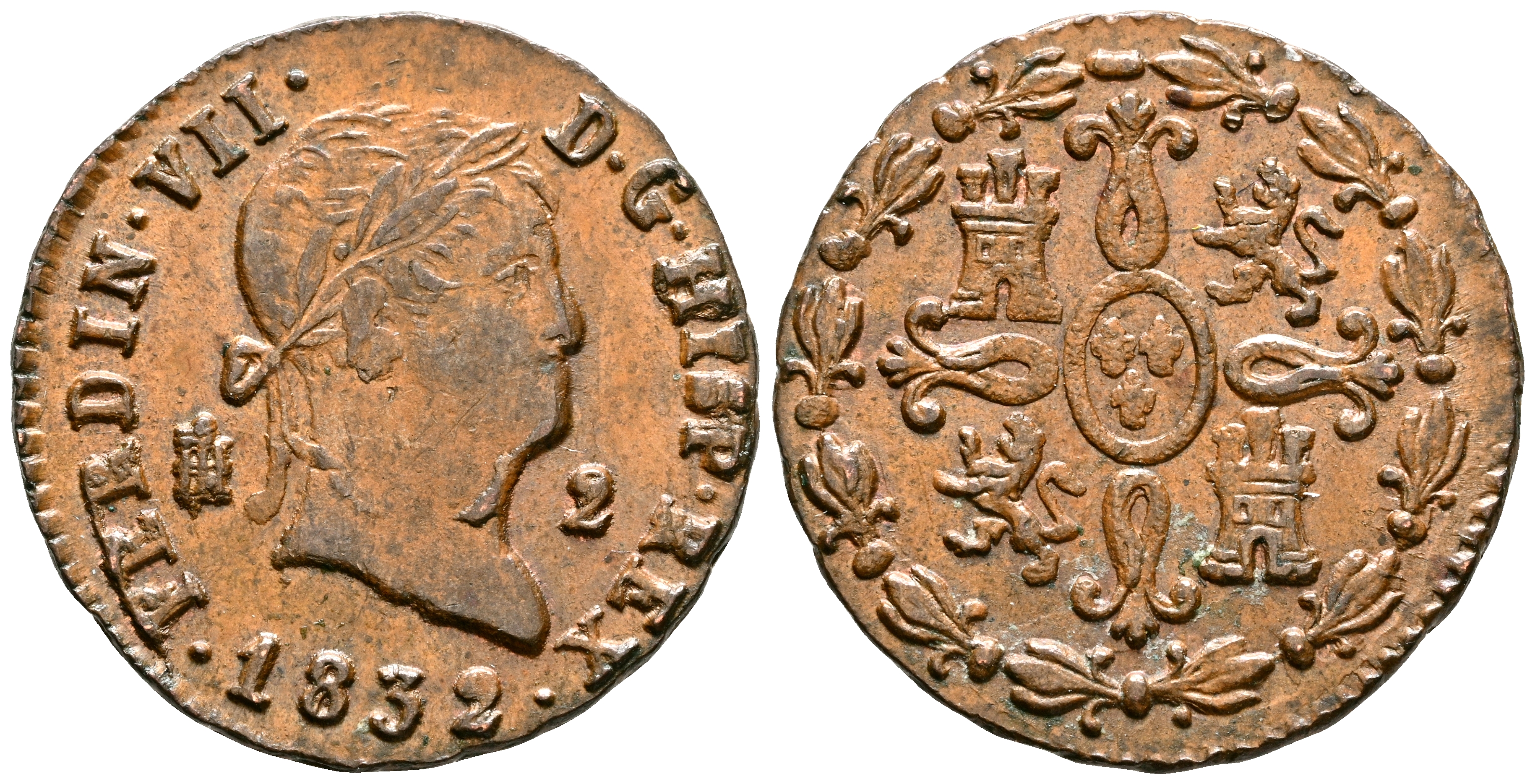 FERNANDO VII (1808-1833). 2 Maravedís. (Ae. 2,20g/19mm). 1832. Segovia. (Cal-2019-155). MBC.