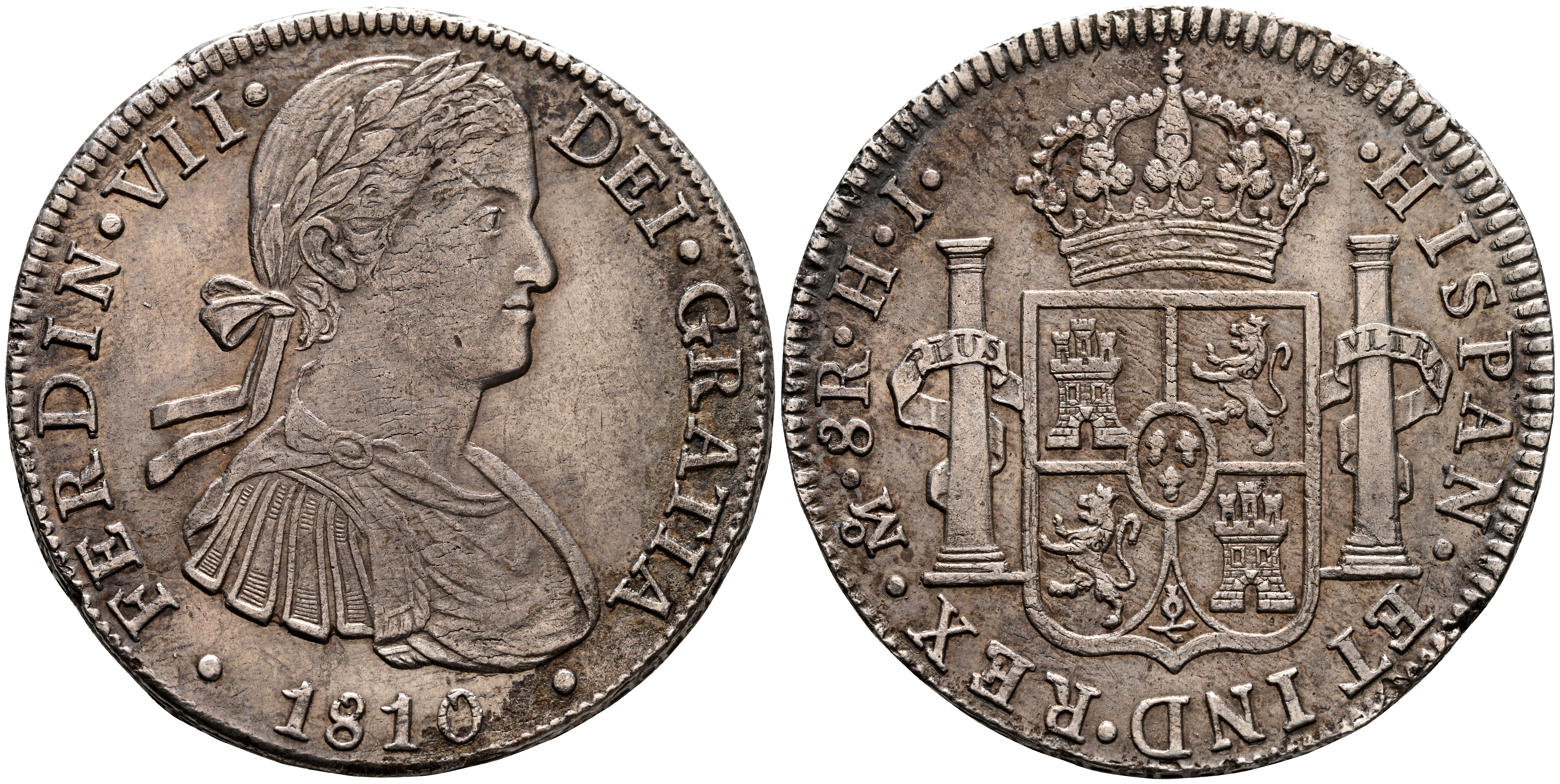 FERNANDO VII (1808-1833). 8 Reales. (Ar. 26,72g/39mm). 1810. Mexico HJ. (Cal-2019-1314). MBC+. Bonita pátina con tonos dorados.