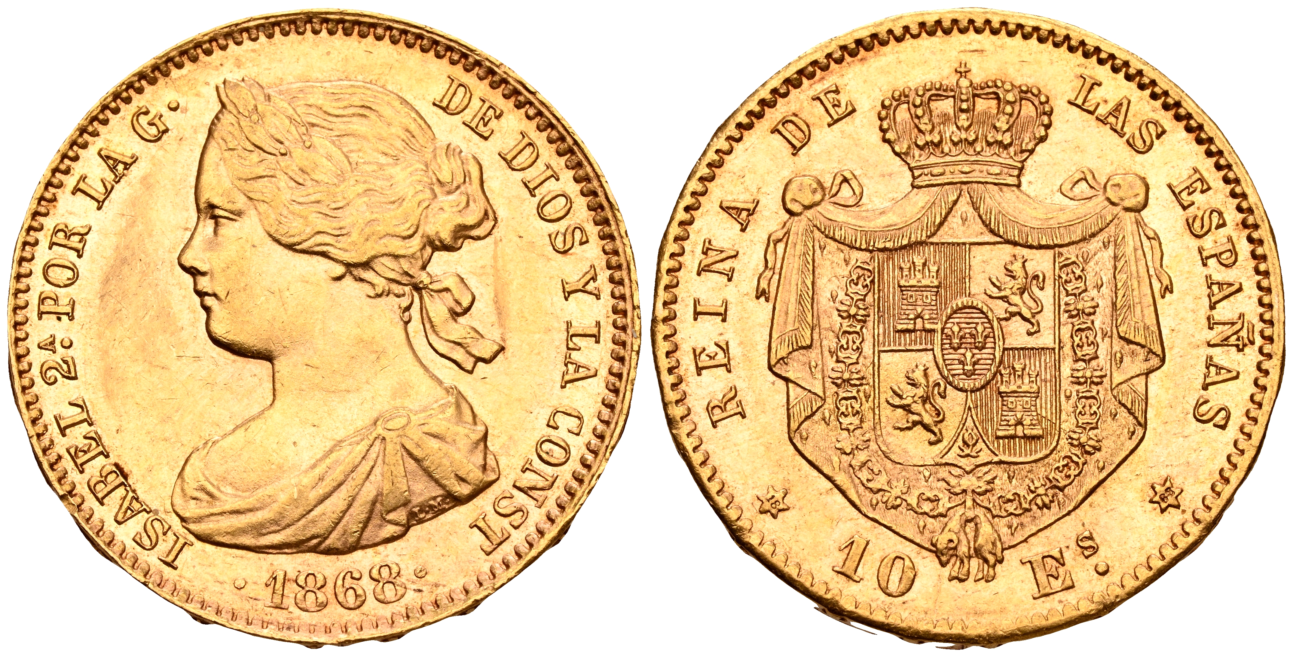 ISABEL II (1833-1868). 10 Escudos. (Au. 8,31g/22mm). 1868 *18-68. Madrid. (Cal-2019-815). EBC.