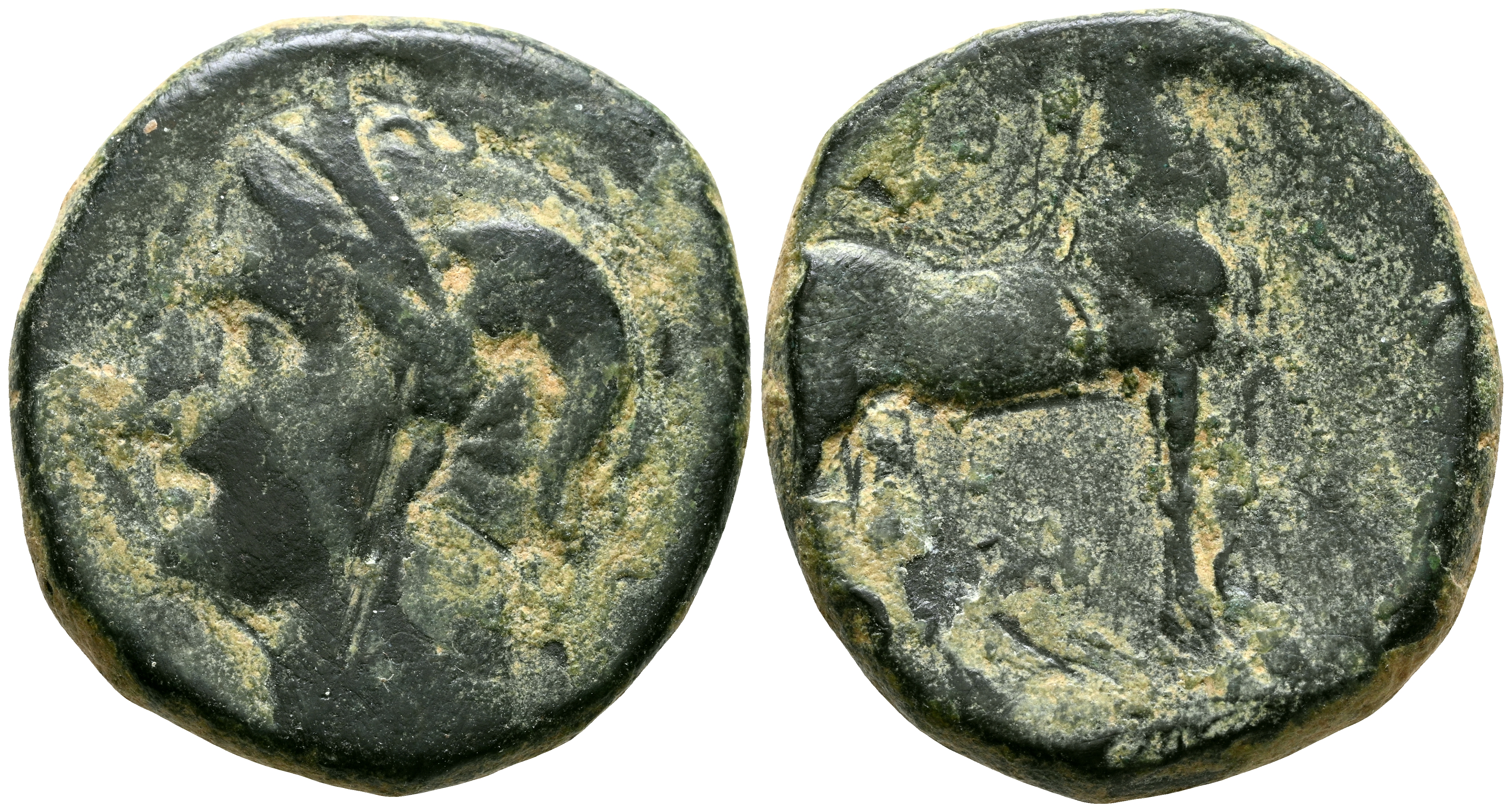 CARTAGONOVA (Cartagena, Murcia). Calco. (Ae. 10,09g/24mm). 220-215 a.C. (FAB-525). Anv: Cabeza de Atenea a izquierda. Rev: Caballo parado a derecha. BC+.