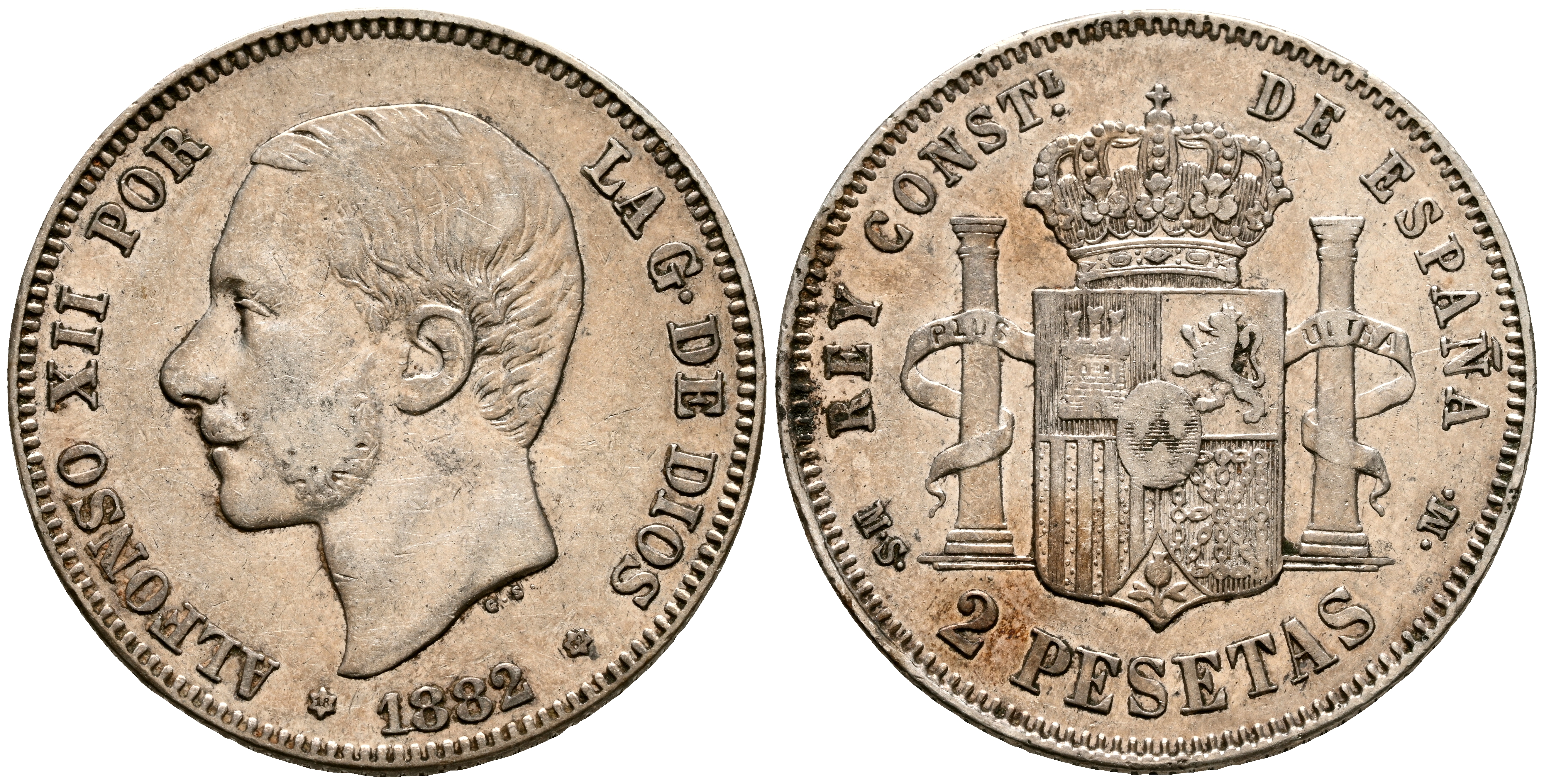 ALFONSO XII (1874-1885). 2 Pesetas. (Ar. 10,00g/27mm). 1882 *18-82. Madrid MSM. (Cal-2019-32). MBC.