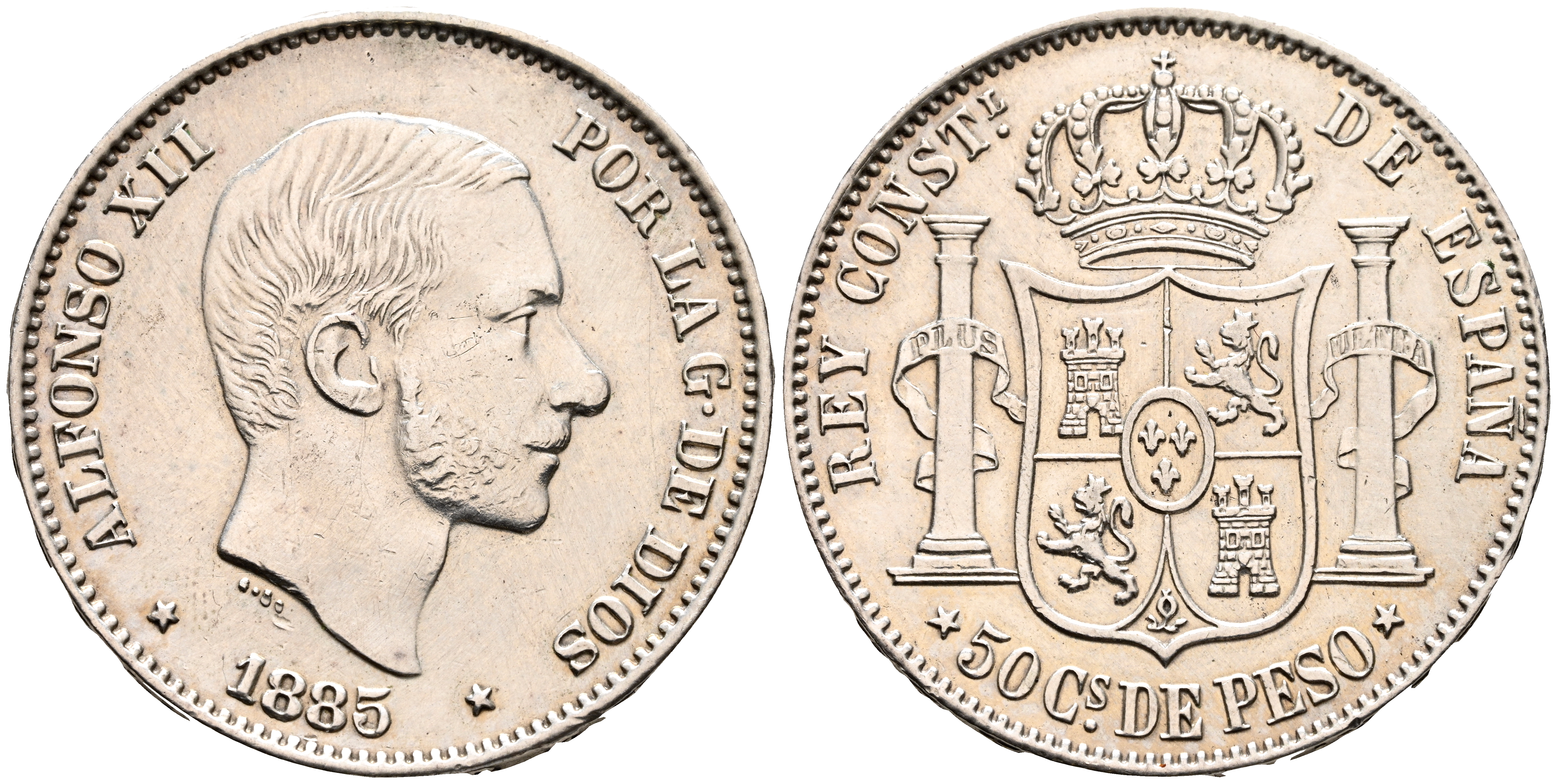 ALFONSO XII (1874-1885). 50 Centavos. (Ar. 12,96g/29mm). 1885. Manila. (Cal-2019-124). MBC+.