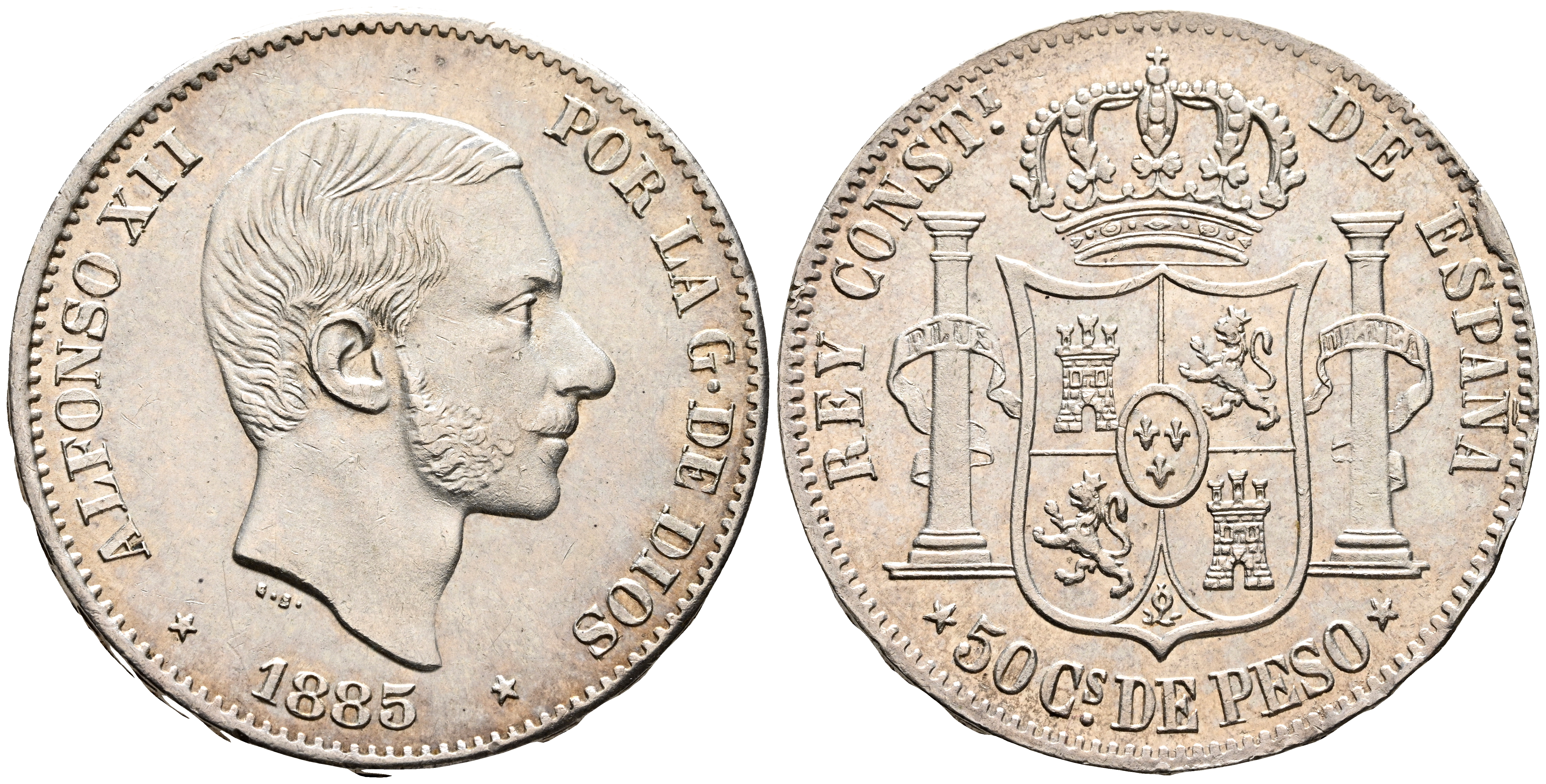 ALFONSO XII (1874-1885). 50 Centavos. (Ar. 12,94g/29mm). 1885. Manila. (Cal-2019-124). EBC. Restos de brillo original.