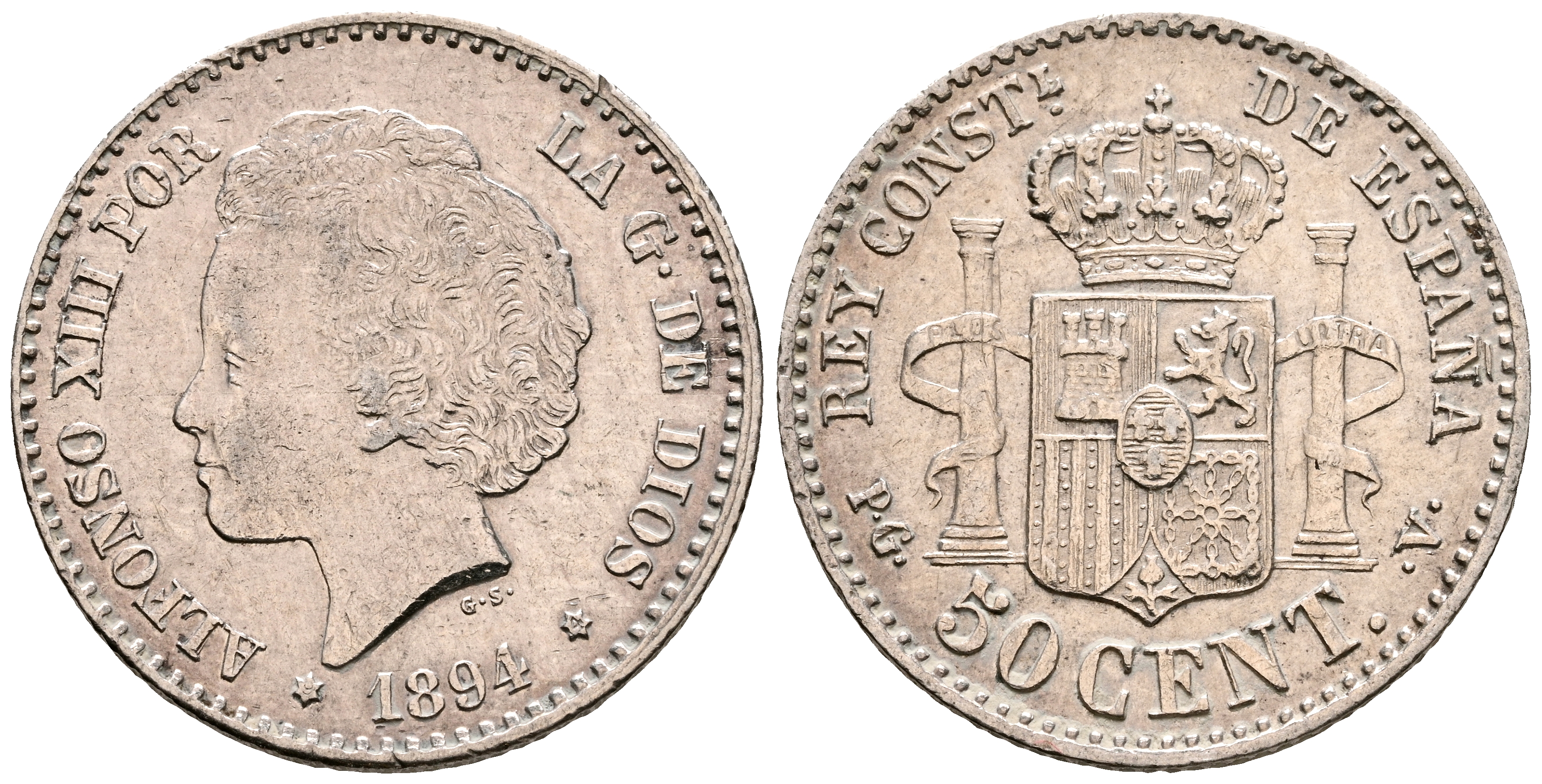 ALFONSO XIII (1885-1931). 50 Céntimos. (Ar. 2,49g/18mm). 1894 *9-4. Madrid PGV. (Cal-2019-43). EBC-.