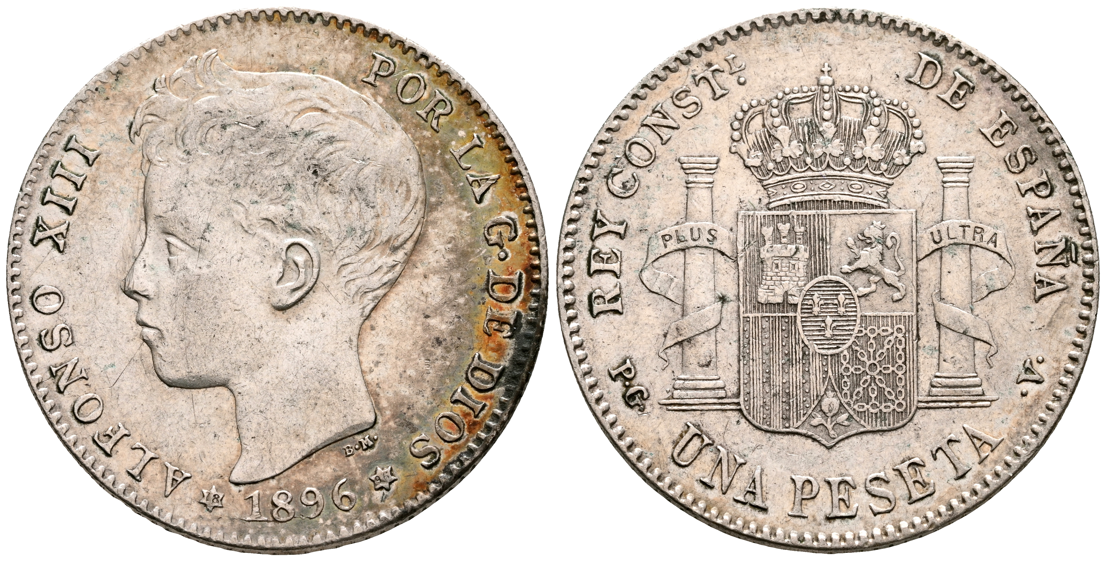 ALFONSO XIII (1885-1931). 1 Peseta. (Ar. 4,93g/23mm). 1896 *18-96. Madrid PGV. (Cal-2019-56). MBC+.