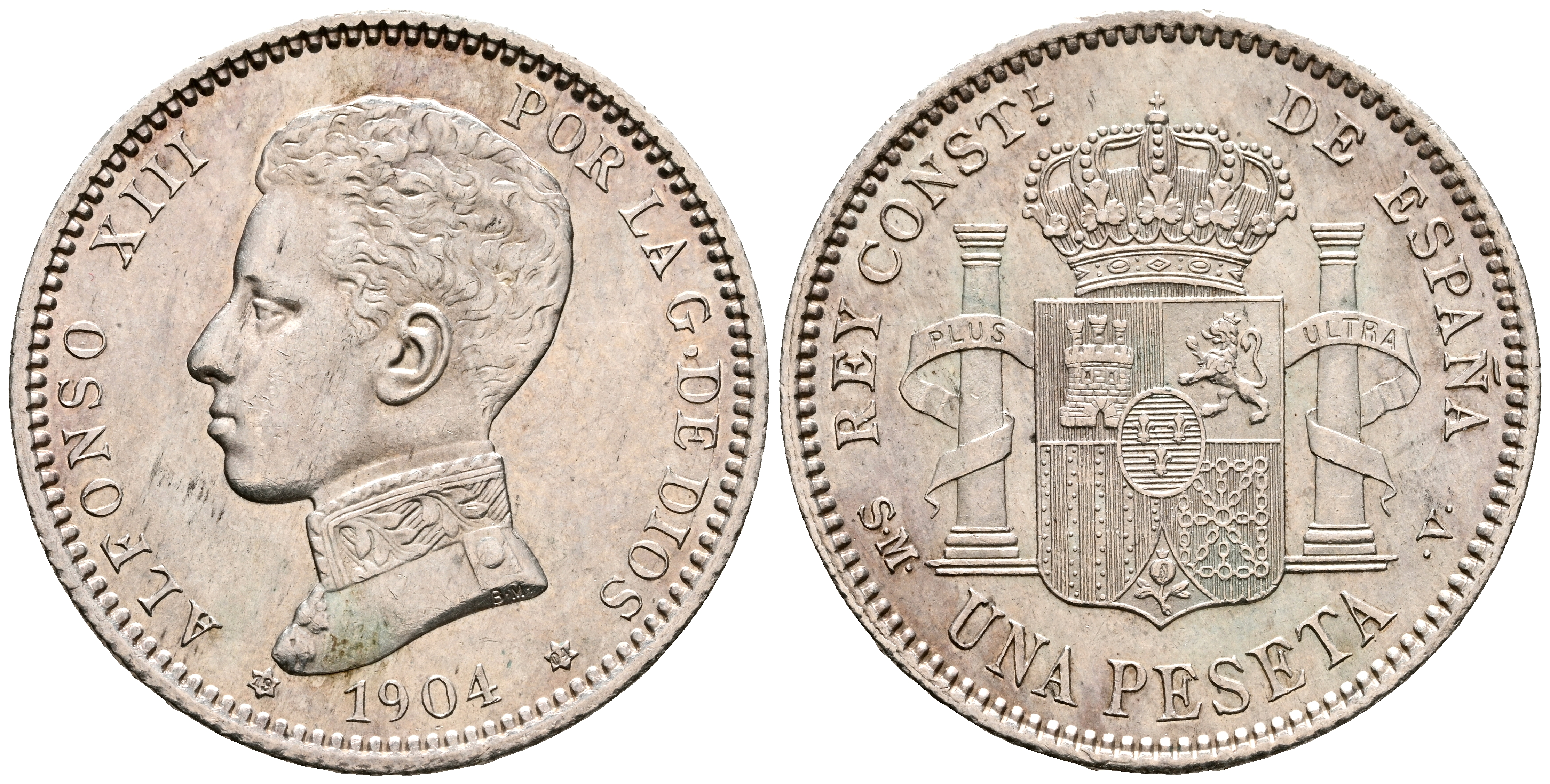 ALFONSO XIII (1885-1931). 1 Peseta. (Ar. 4,99g/23mm). 1904 * 19-04. Madrid SMV. (Cal-2019-69). Cero Partido. EBC+. Brillo original.
