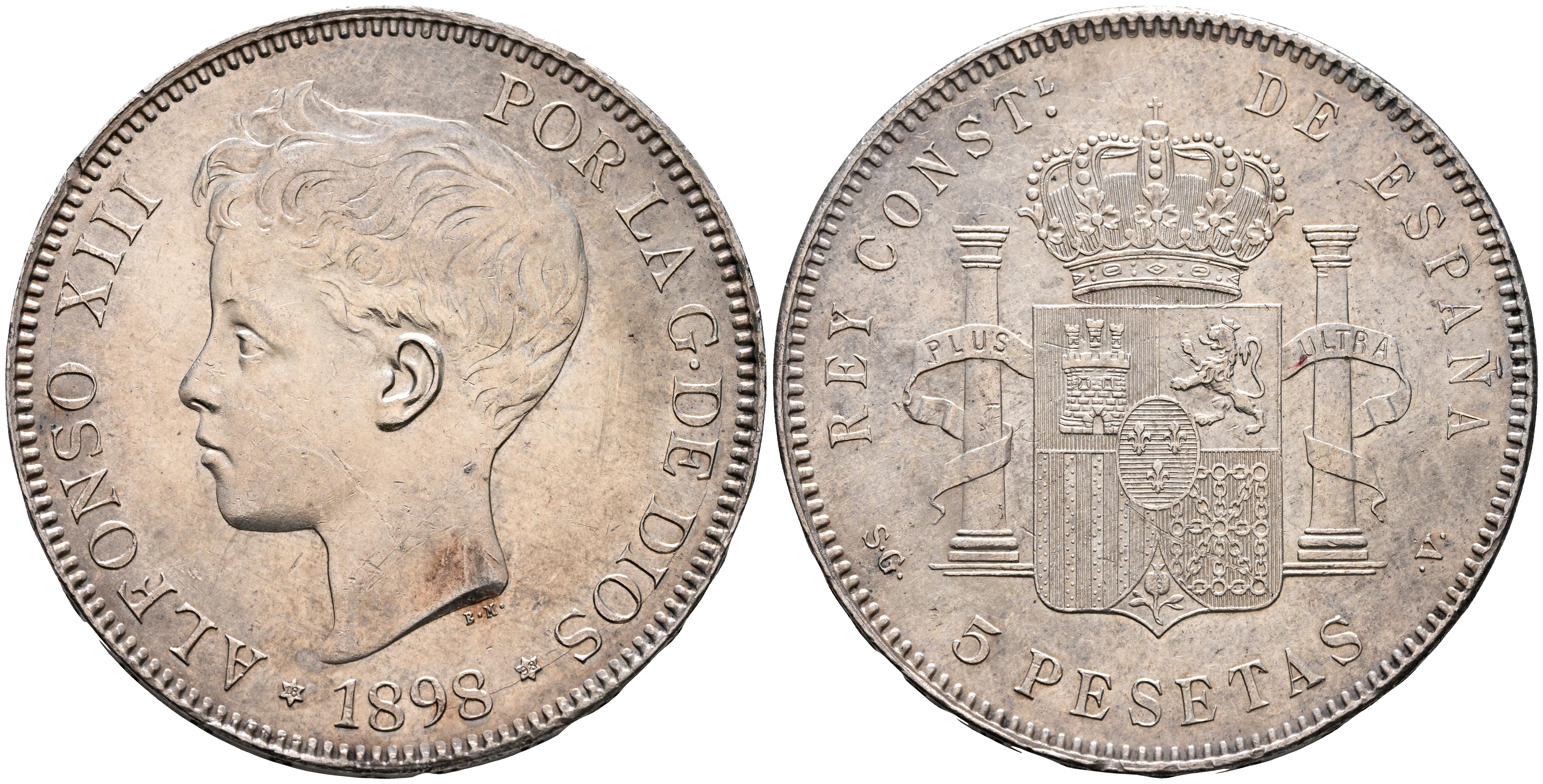 ALFONSO XIII (1885-1931). 5 Pesetas. (Ar. 25,06g/37mm). 1898 *18-98. Madrid SGV. (Cal-2019-109). EBC-.