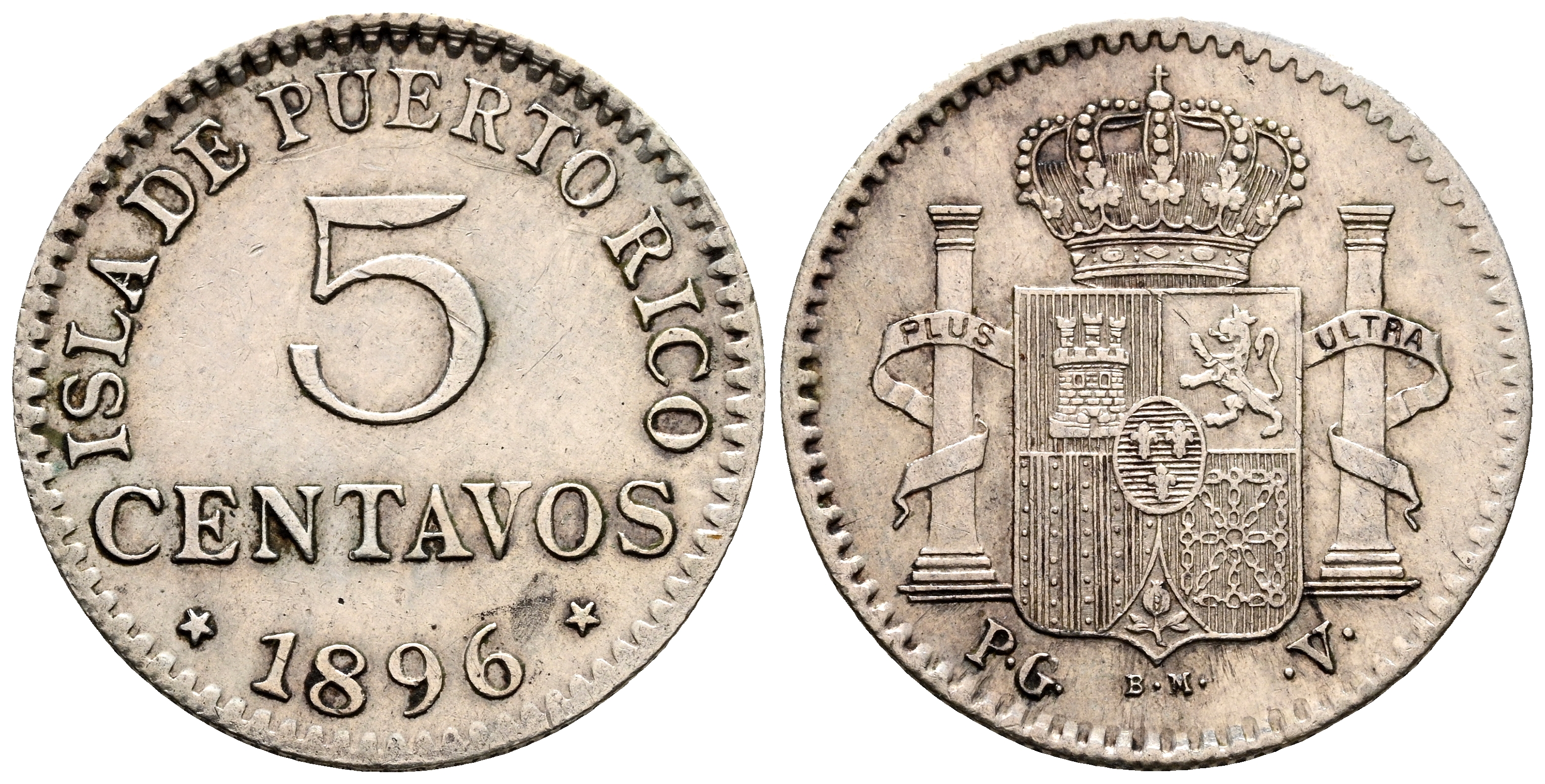 ALFONSO XIII (1885-1931). 5 Centavos. (Ar. 1,15g/16mm). 1896. Puerto Rico PGV. (Cal-2019-124). MBC+.
