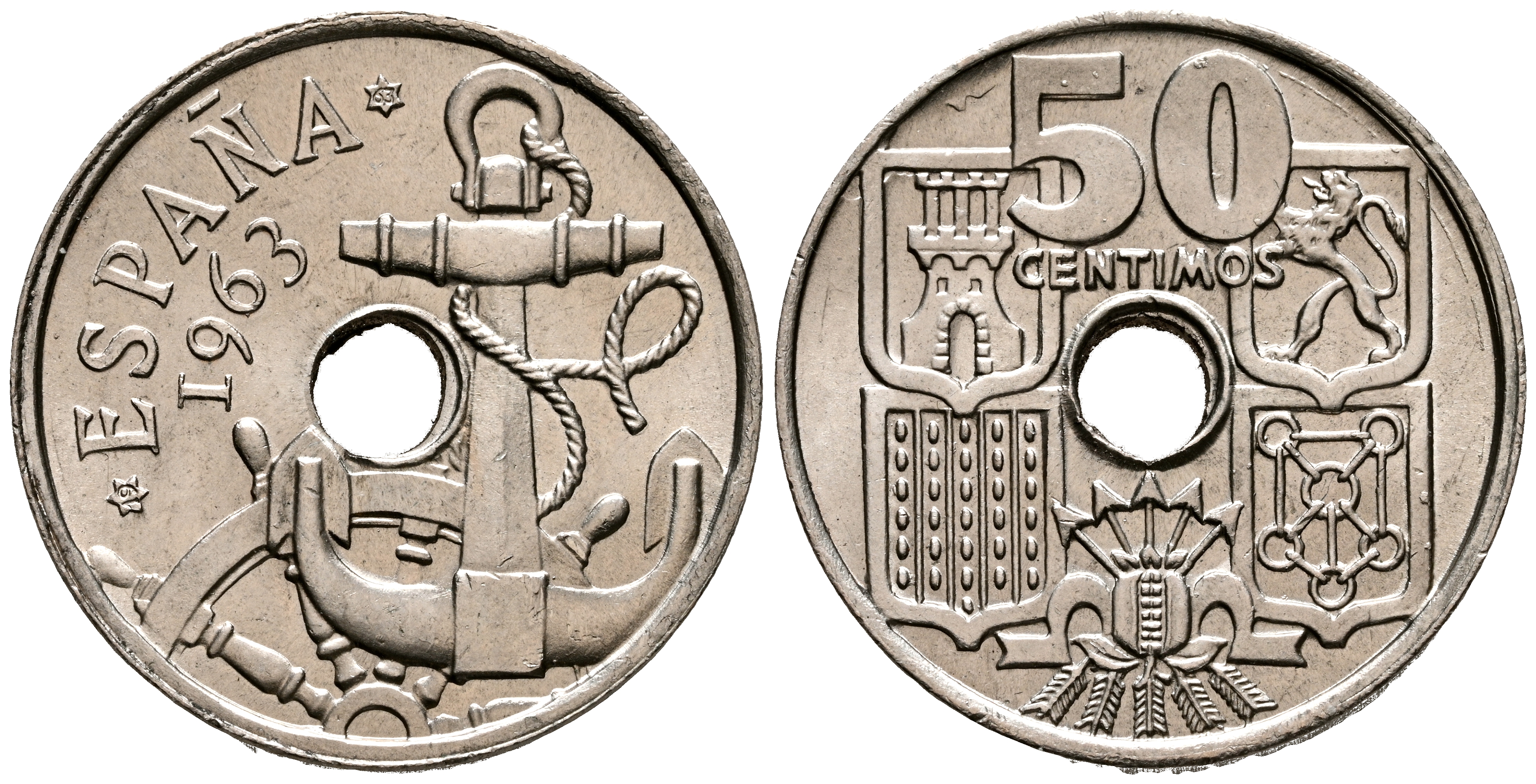 ESTADO ESPAÑOL (1936-1975). 50 Céntimos. (Cu-Ni. 4,05g/20mm). 1963 *19-63. Madrid. (Cal-2019-28). SC.