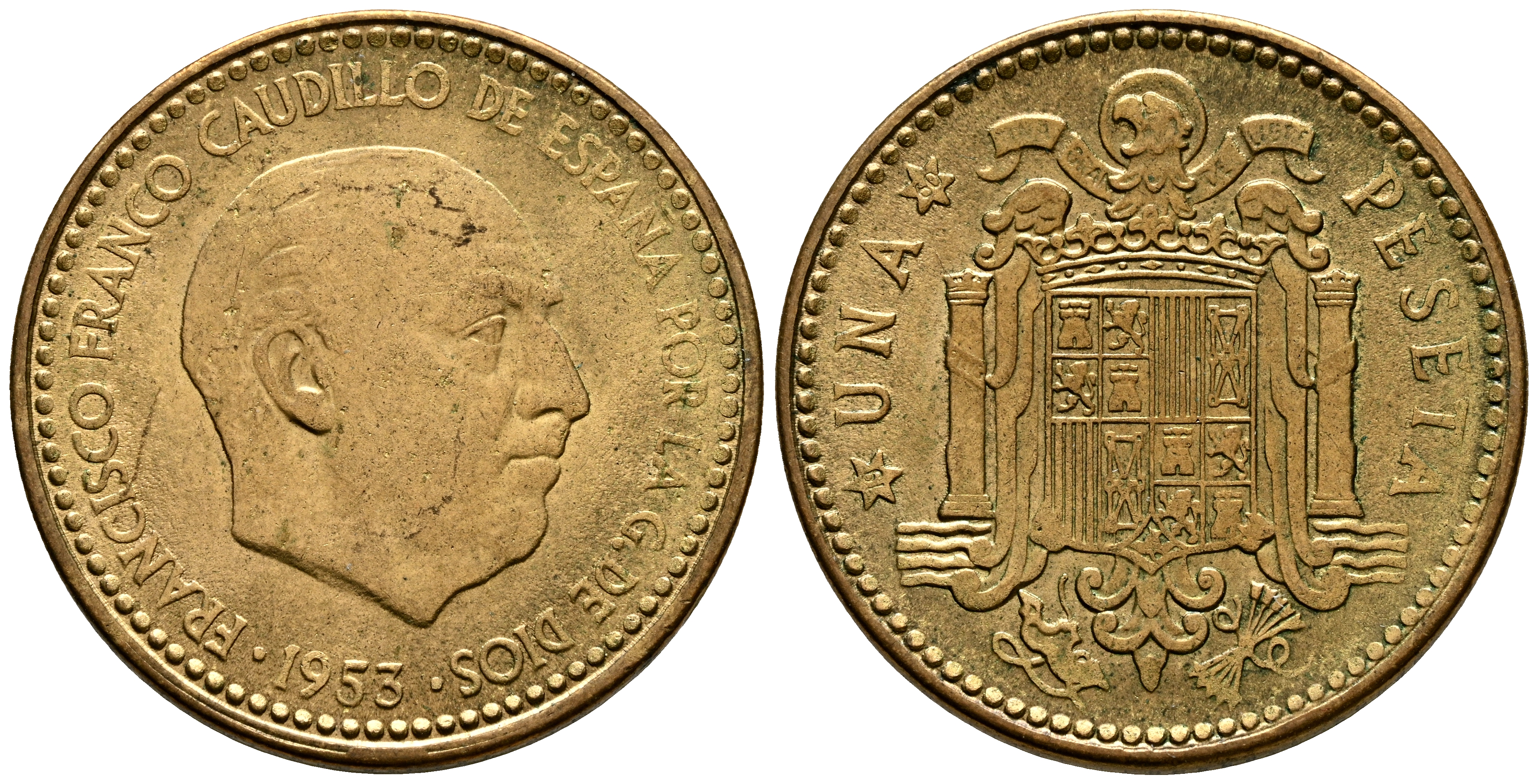 ESTADO ESPAÑOL (1936-1975). 1 Peseta. (AlCu. 3,48/21mm). 1953 *19-60. Madrid. (Cal-2019-59). EBC+.