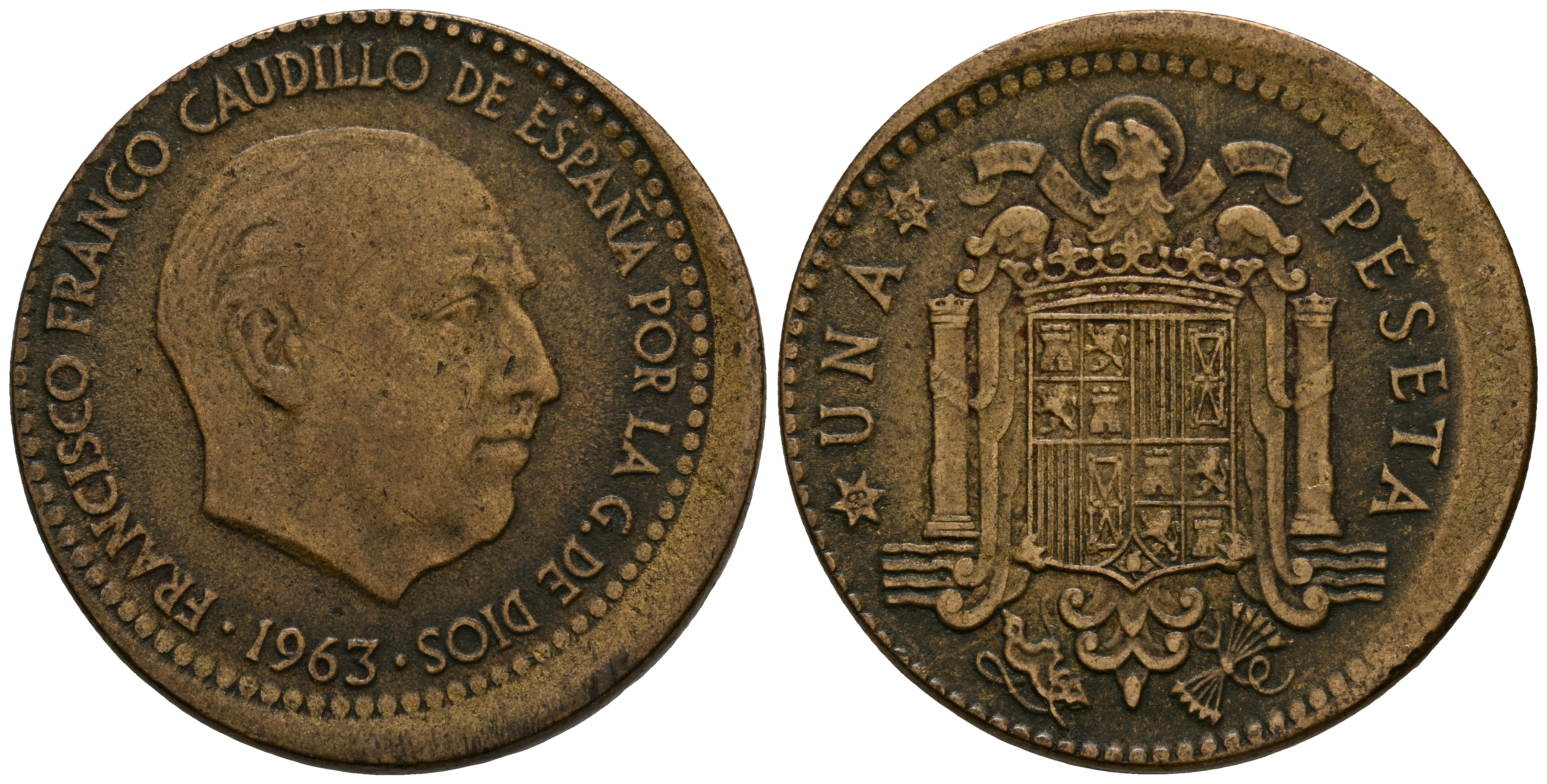 ESTADO ESPAÑOL (1936-1975). 1 Peseta. (Al-Ae. 3,76g/21mm). 1963 *19-63. Madrid.(Cal-2019-63). MBC. Acuñación desplazada: 2mm.