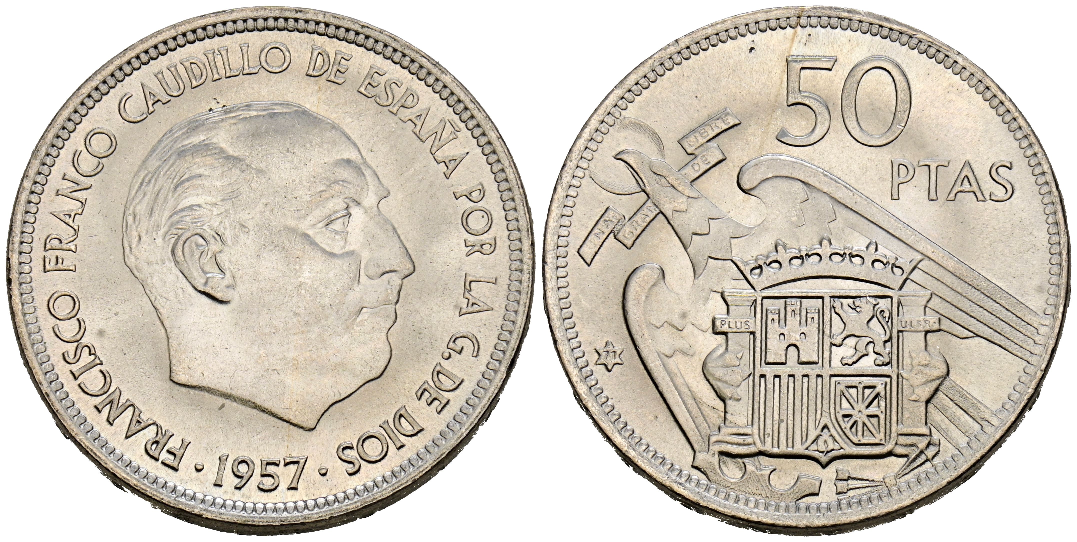 ESTADO ESPAÑOL (1936-1975). 50 Pesetas. (Ni. 12,38g/30mm). 1957 *71. Madrid. (Cal-2019-140). SC.