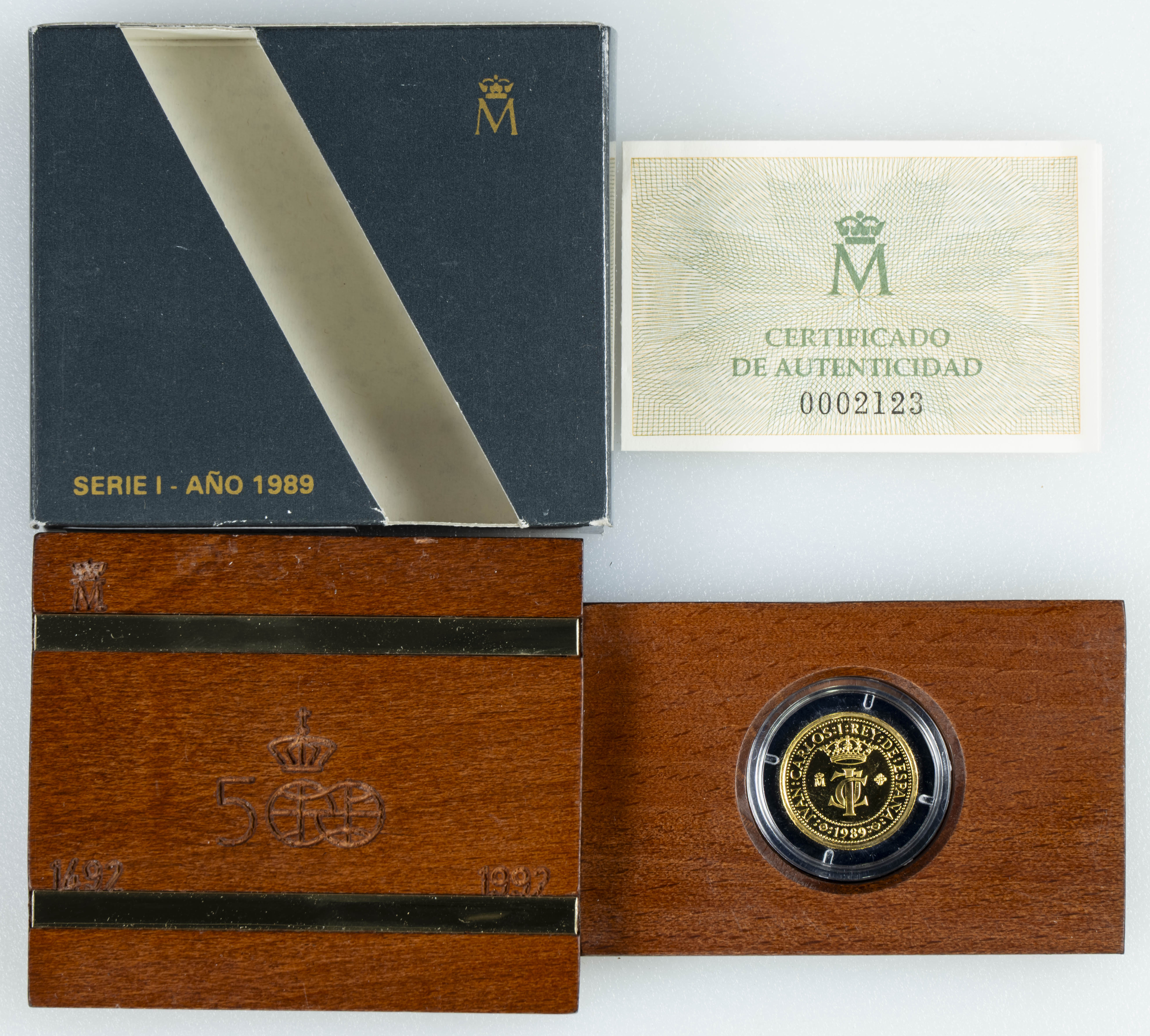 JUAN CARLOS I (1975-2014). 10.000 Pesetas. (Au. 3,37g/19mm). Quinto Centenario. Serie I. 1989. FNMT. PROOF. Presentada en estuche oficial y con certificado de autenticidad.