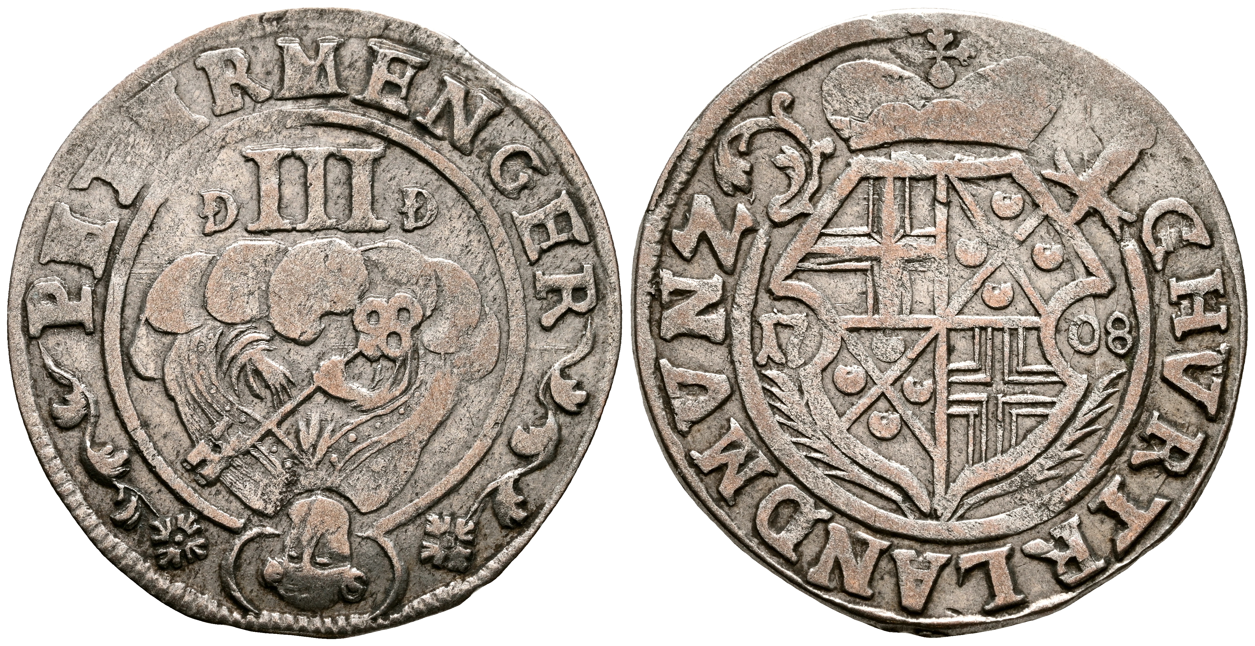 ALEMANIA, Johann Hugo von Orsbeck. 3 Petermenger. (Ar. 2,74g/22mm). 1708. Tréveris. (Km#191). MBC.