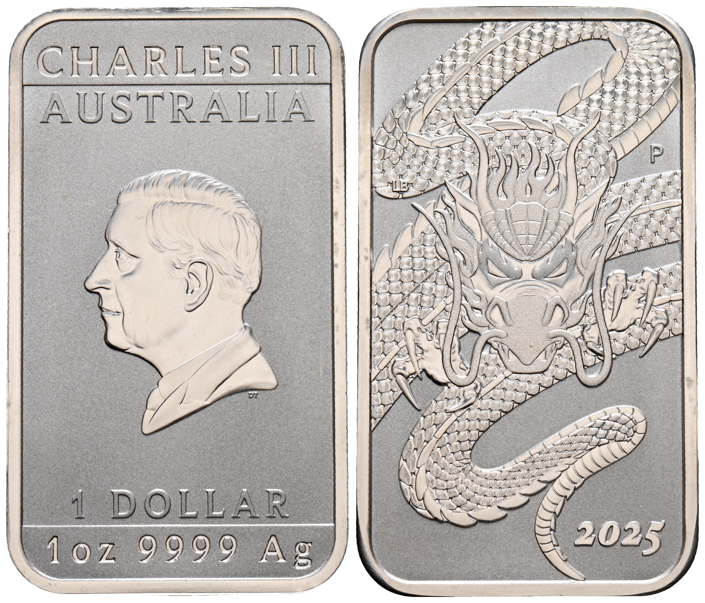 AUSTRALIA. 1 Dollar. (Ar. 31,27g/27mm). 2025. Perth. Dragón. Moneda rectangular. Plata de 0,999 milésimas. SC.