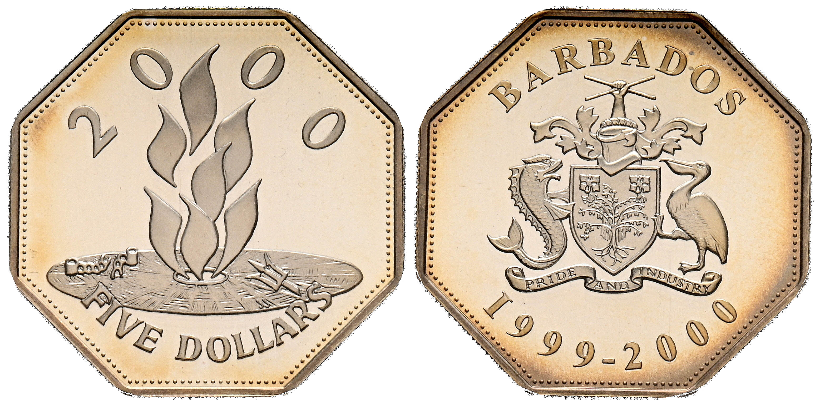 BARBADOS. 5 Dollars. (Ar. 28,26g/39mm)*. 1999. Millennium. (Km#67). Encapsulada por PCGS PR 68DCAM. *Peso y medidas teóricos.