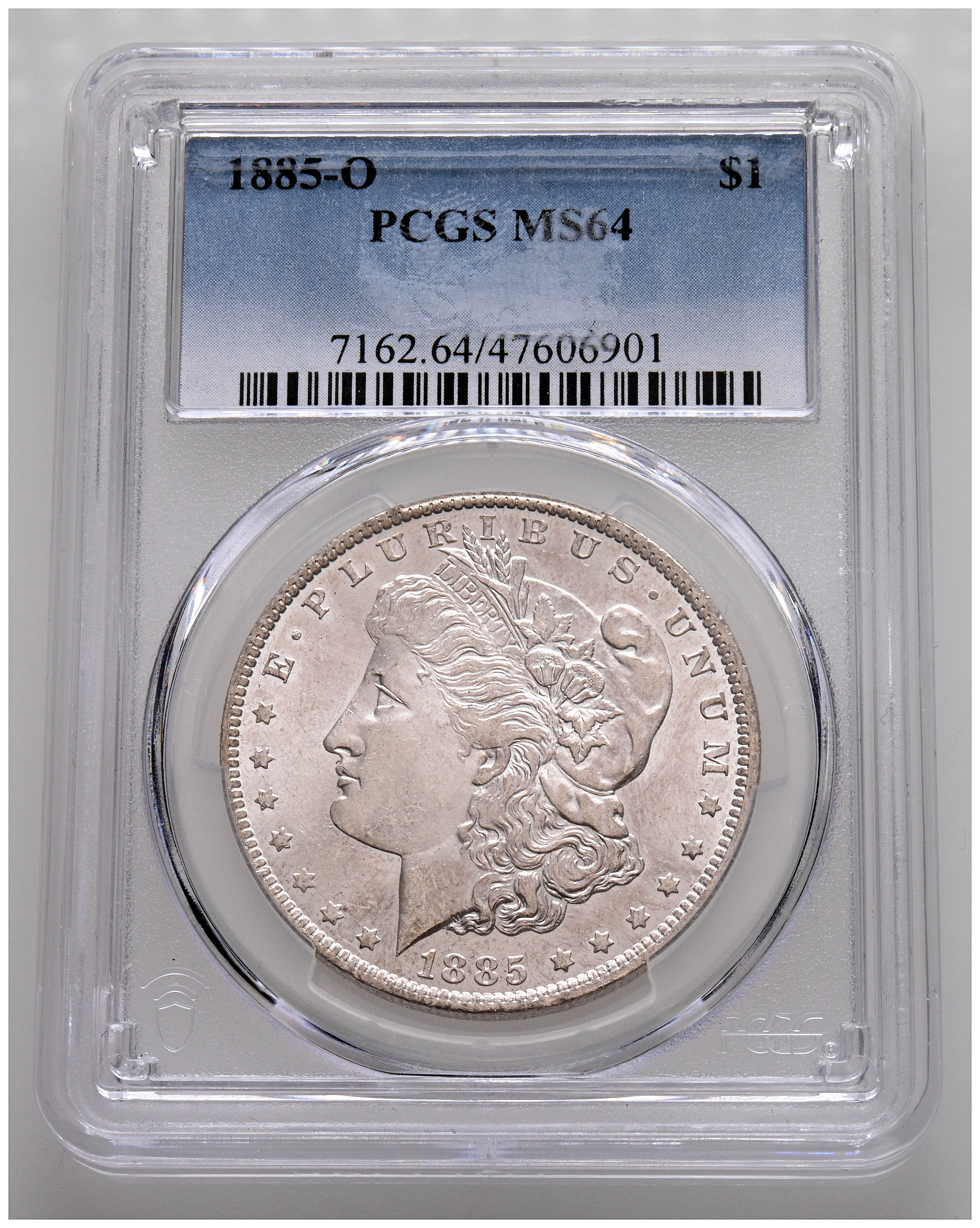 ESTADOS UNIDOS. 1 Dollar. (Ar. 27,00g/38mm)*. 1885. Nueva Orleans. (Km#110). Encapuslado por PCGS MS 64. *Peso y medidas teóricos