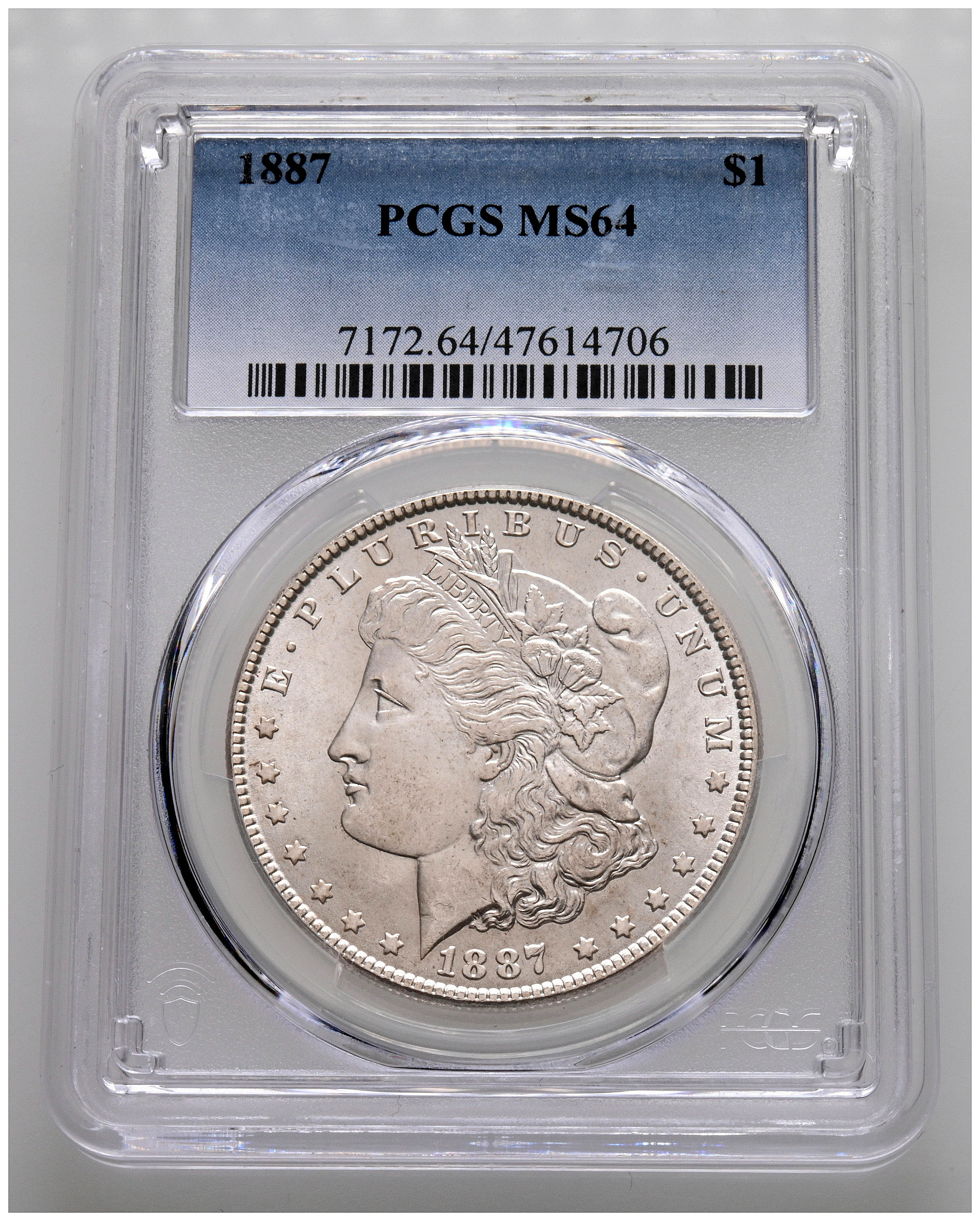 ESTADOS UNIDOS. 1 Dollar. (Ar. 27,00g/38mm)*. 1887. Philadelphia. (Km#110). Encapuslado por PCGS MS 64. *Peso y medidas teóricos