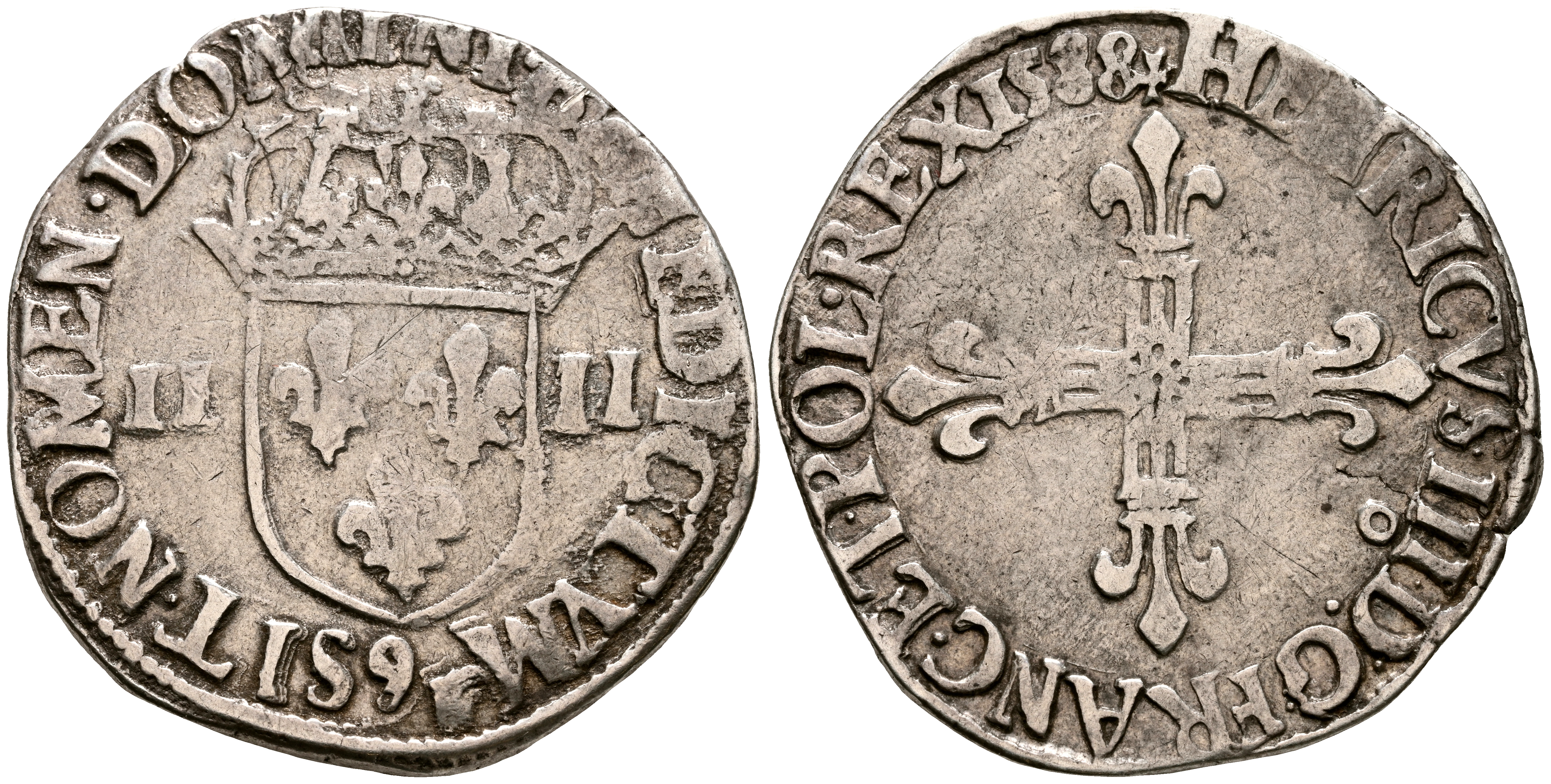 FRANCIA, Enrique III. 1/4 Ecu. (Ar. 9,46g/28mm). 1588. Rennes. (Duplessy 1133). MBC.