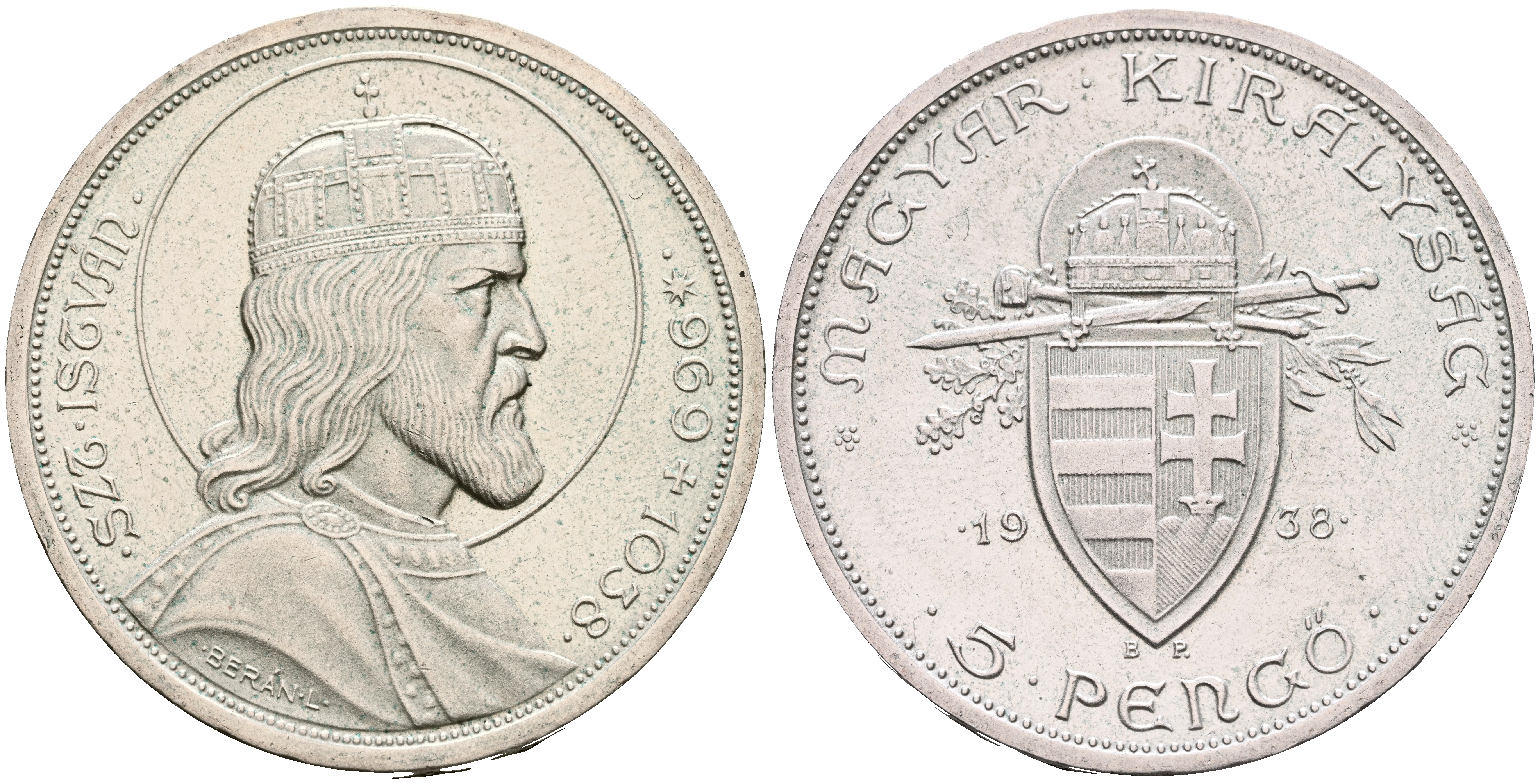 HUNGRÍA. 5 Pengo. (Ar. 25,07g/36mm). 1938. Budapest. (Km#516). EBC.