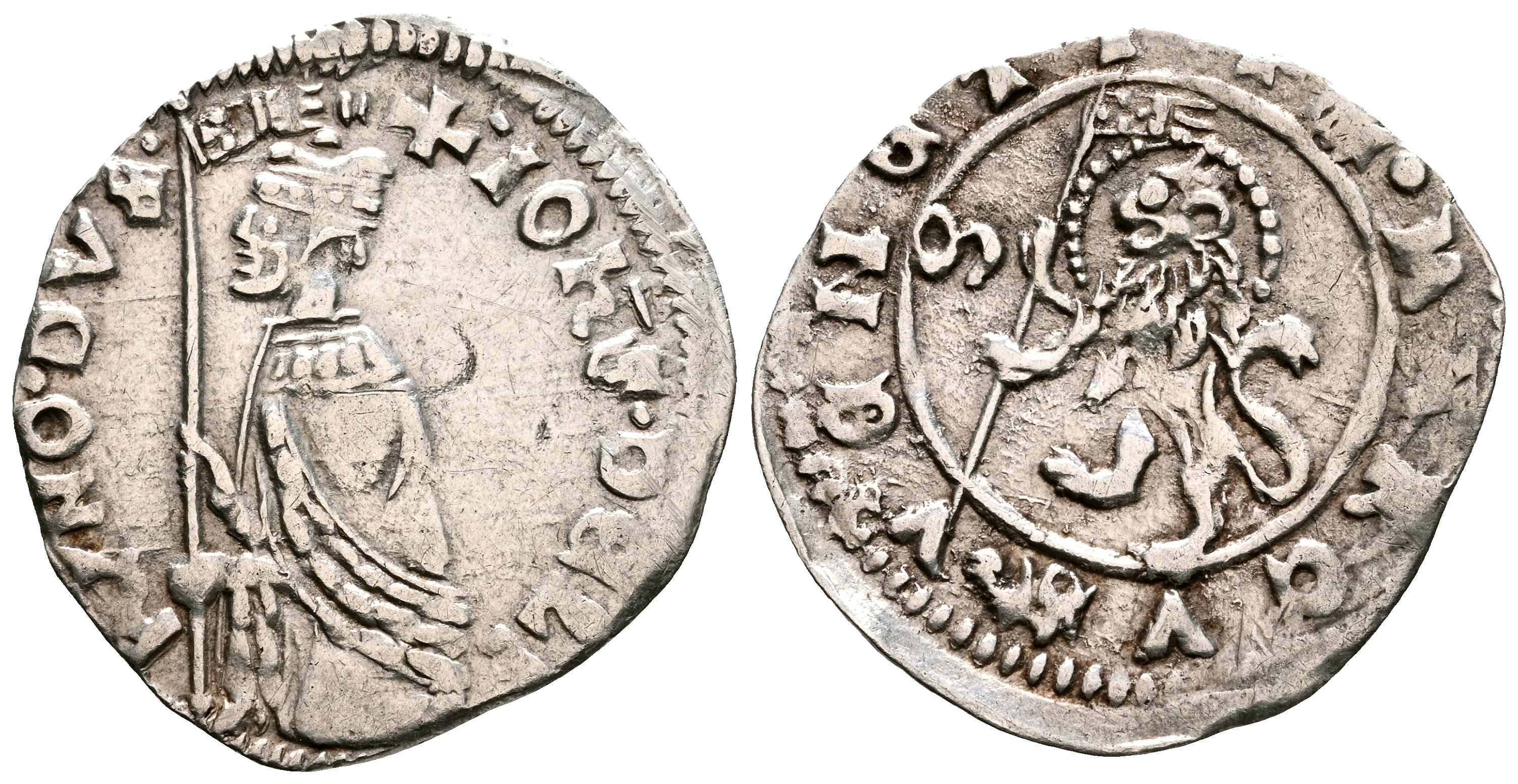 ITALIA, Giovanni Dolfino (1356-1361), 57º Dux de Venecia. Soldino. (Ar. 0,55g/16mm). Venecia. (Paolucci 4). Anv: Dux arrodillado a izquierda portando estandarte, alrededor leyenda: IOHS. DELPHYNO. DVX. Rev: León de Venecia a izquierda, alrededor leyenda: S MARCVS VENETI. MBC+. Escasa.