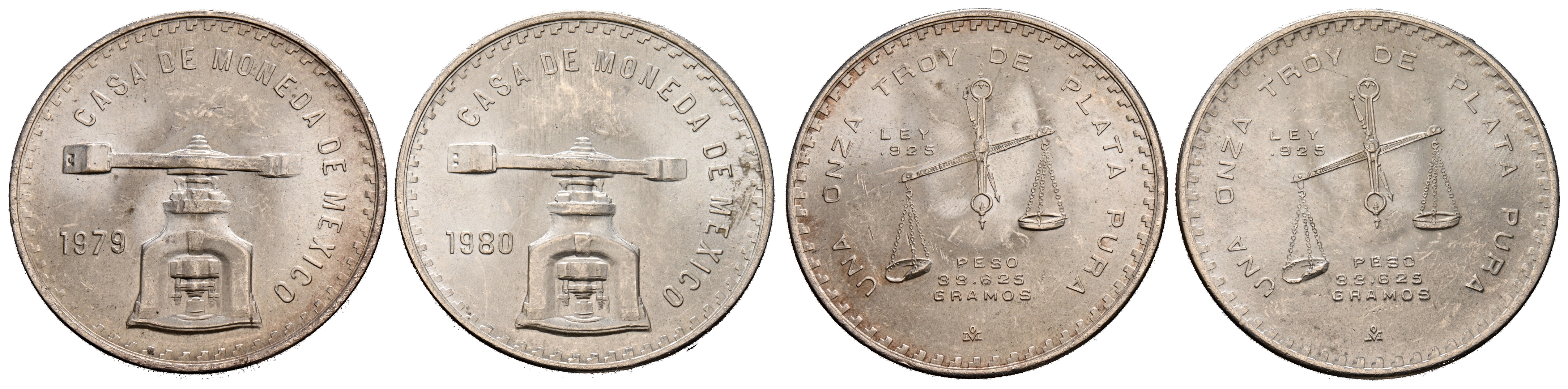 MÉXICO. Pareja de Onzas Troy. 1979 y 1980. (Km#49b.3/b.5). SC-. Brillo original. A EXAMINAR.