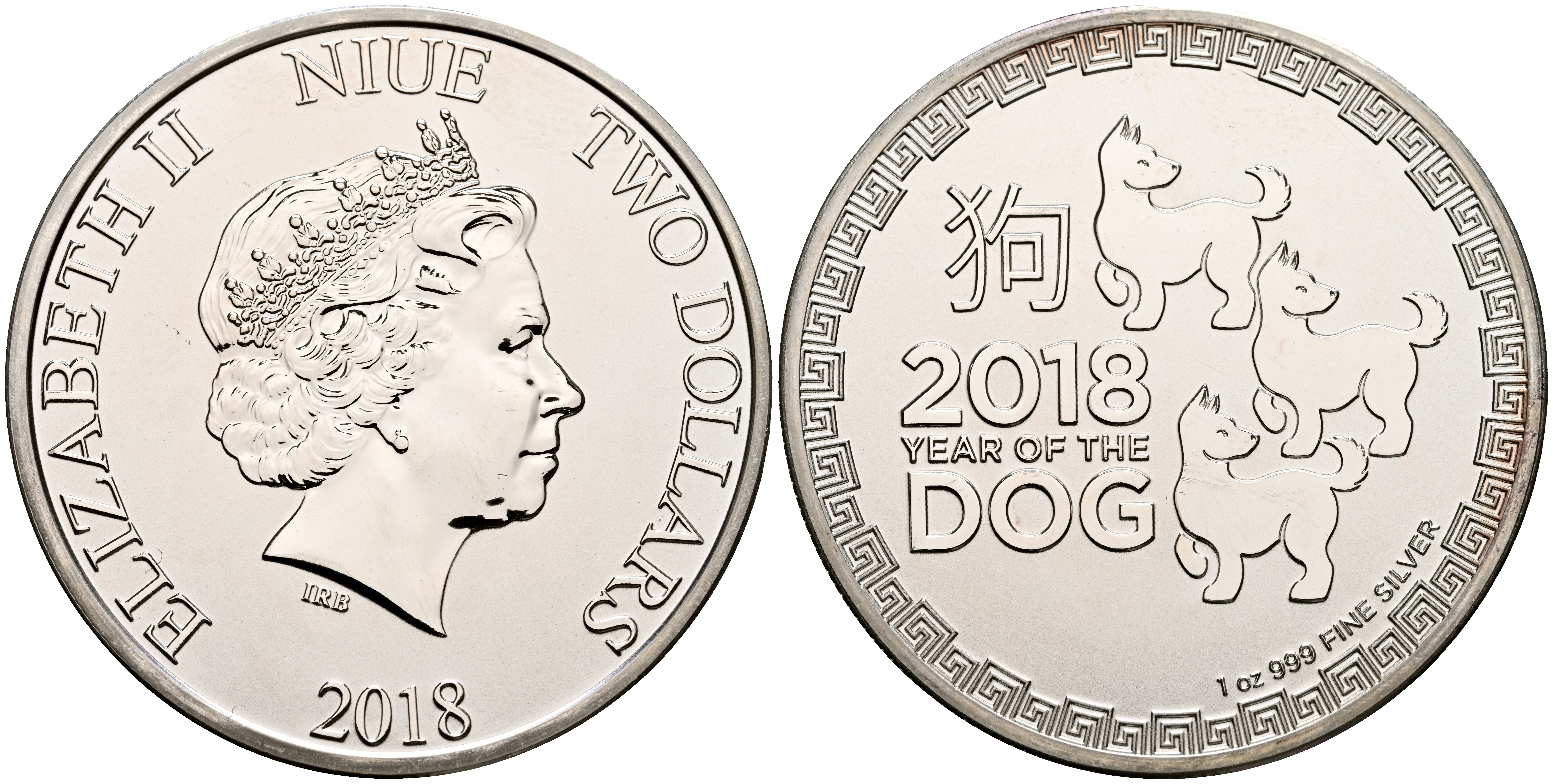 NIUE. 2 Dollars. (Ar. 31,37g/40mm). 2018. Año del perro. (Km#2907). SC.