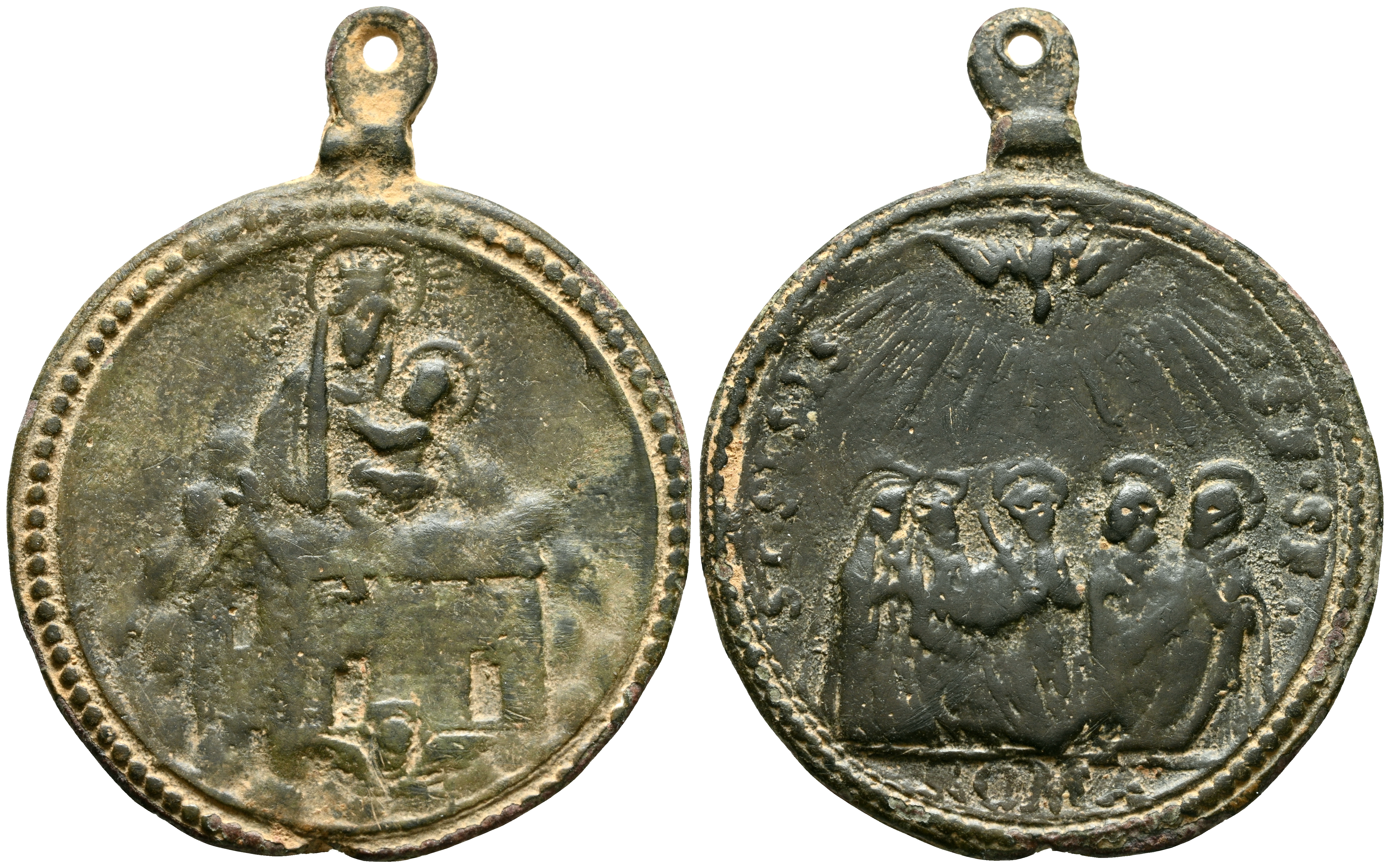 MEDALLA DEVOCIONAL. (Ae. 5,62g/34x28mm). Siglo XVI-XIX. Roma Anv: Virgen con niño sobre ermita. Rev: Representación de Pentecostés, en exergo: ROMA, alrededor: SI. SI. SIS. SI. SI. MBC.