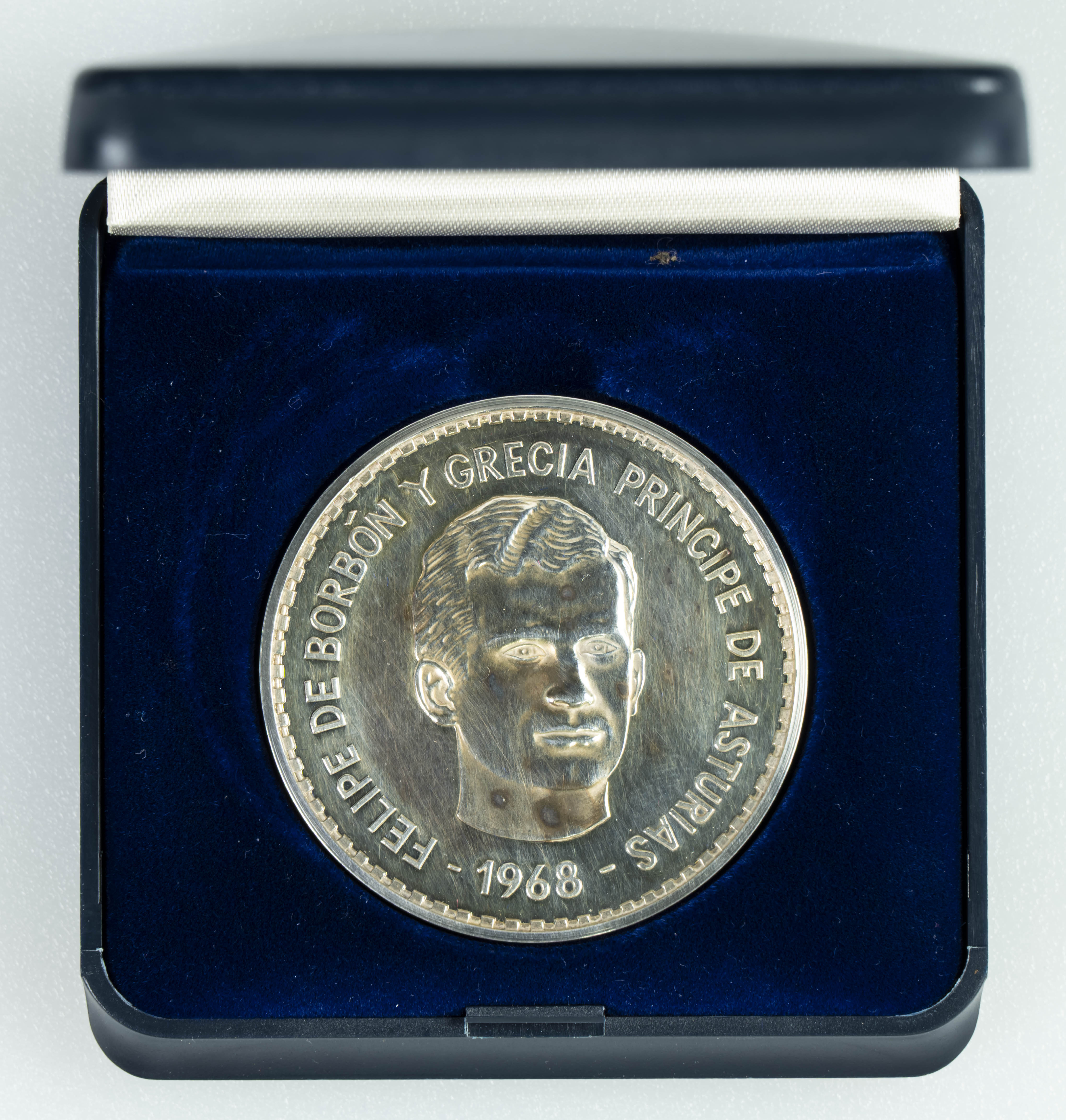 ESPAÑA. 2 Onzas. (Ar. 62,36g/47mm). S/D. Felipe de Borbón. Príncipe de Asturias. EBC+. Rayitas y manchitas en anverso. Incluye estuche.