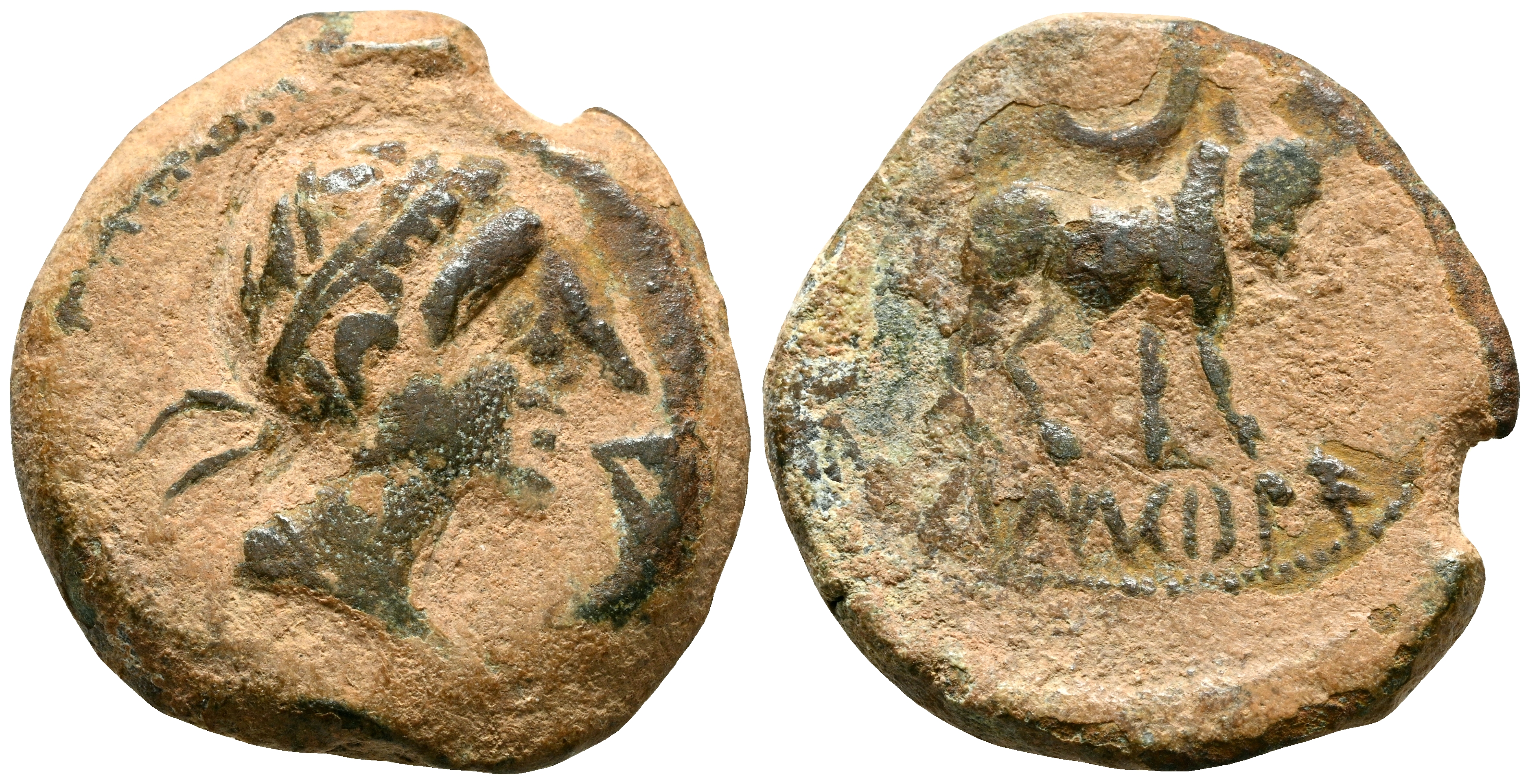 CASTULO (Cazlona, Jaén). Semis. (Ae. 5,98g/19mm). 180 A.C. (FAB-722). Anv: Cabeza masculina diademada a derecha, delante letra ibérica: Ca. Rev: Toro a derecha, encima letra L y creciente, en exergo leyenda ibérica: CaSTeLe. MBC.