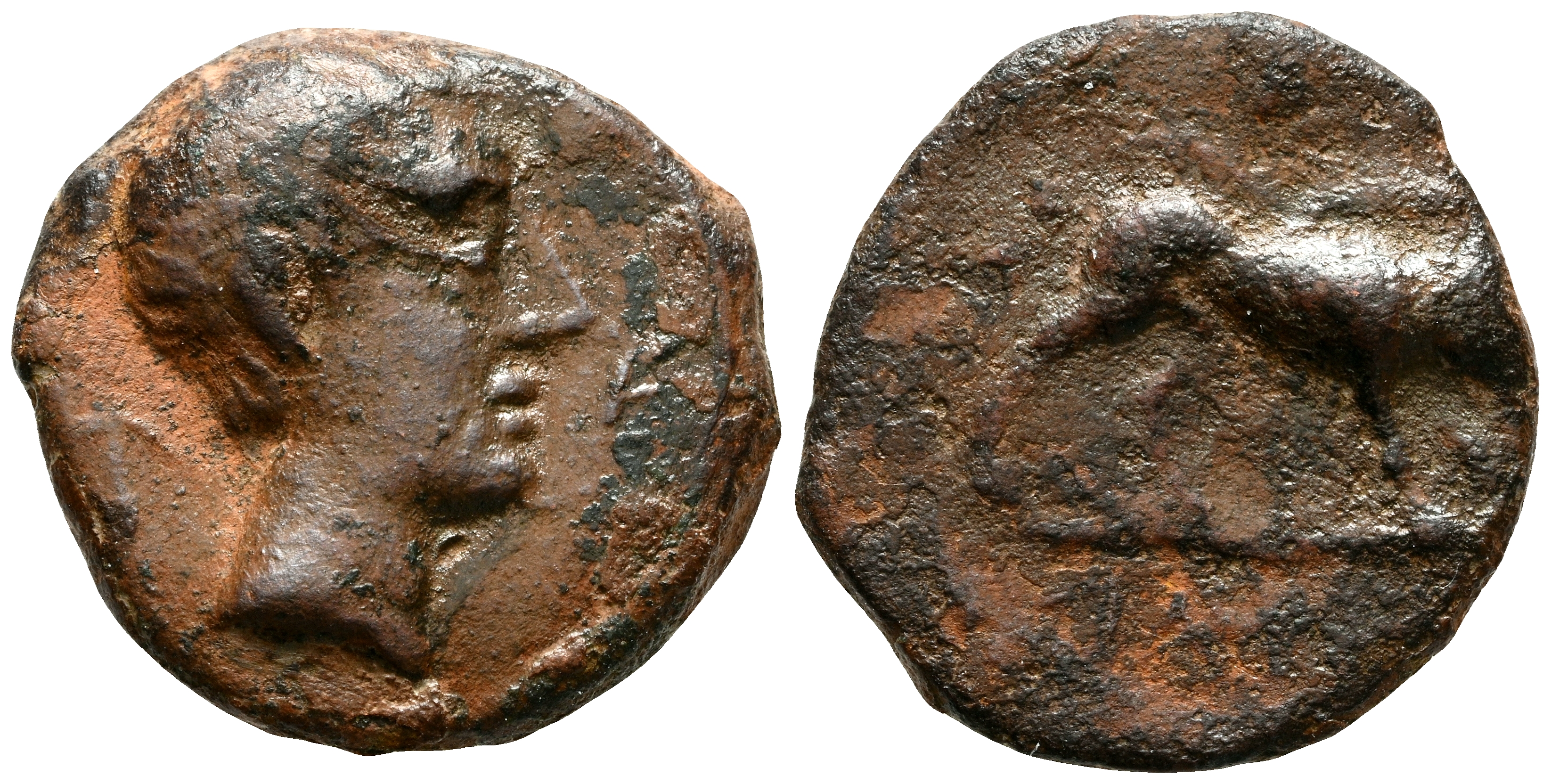 CASTULO (Cazlona, Jaén). Cuadrante. (Ae. 3,68g/17mm). 180 A.C. (FAB-735). Anv: Cabeza masculina diademada a derecha. Rev: Jabalí a derecha, encima estrella, debajo de línea leyenda ibérica: CaSTeLE. BC+.