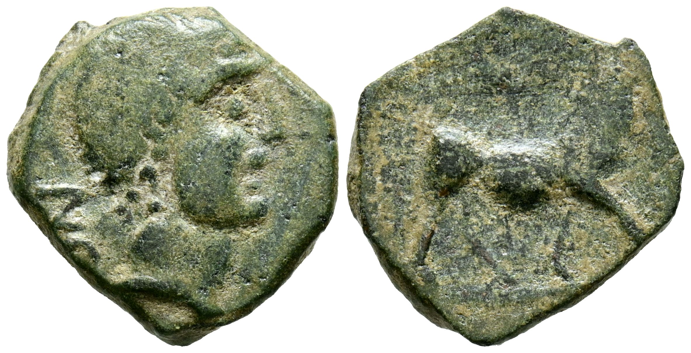 CASTULO (Cazlona, Jaén). Sextante. (Ae. 2,89g/16mm). 180 a.C. (FAB-746). Anv: Cabeza diademada a derecha. Rev: Toro a derecha, encima creciente. MBC.
