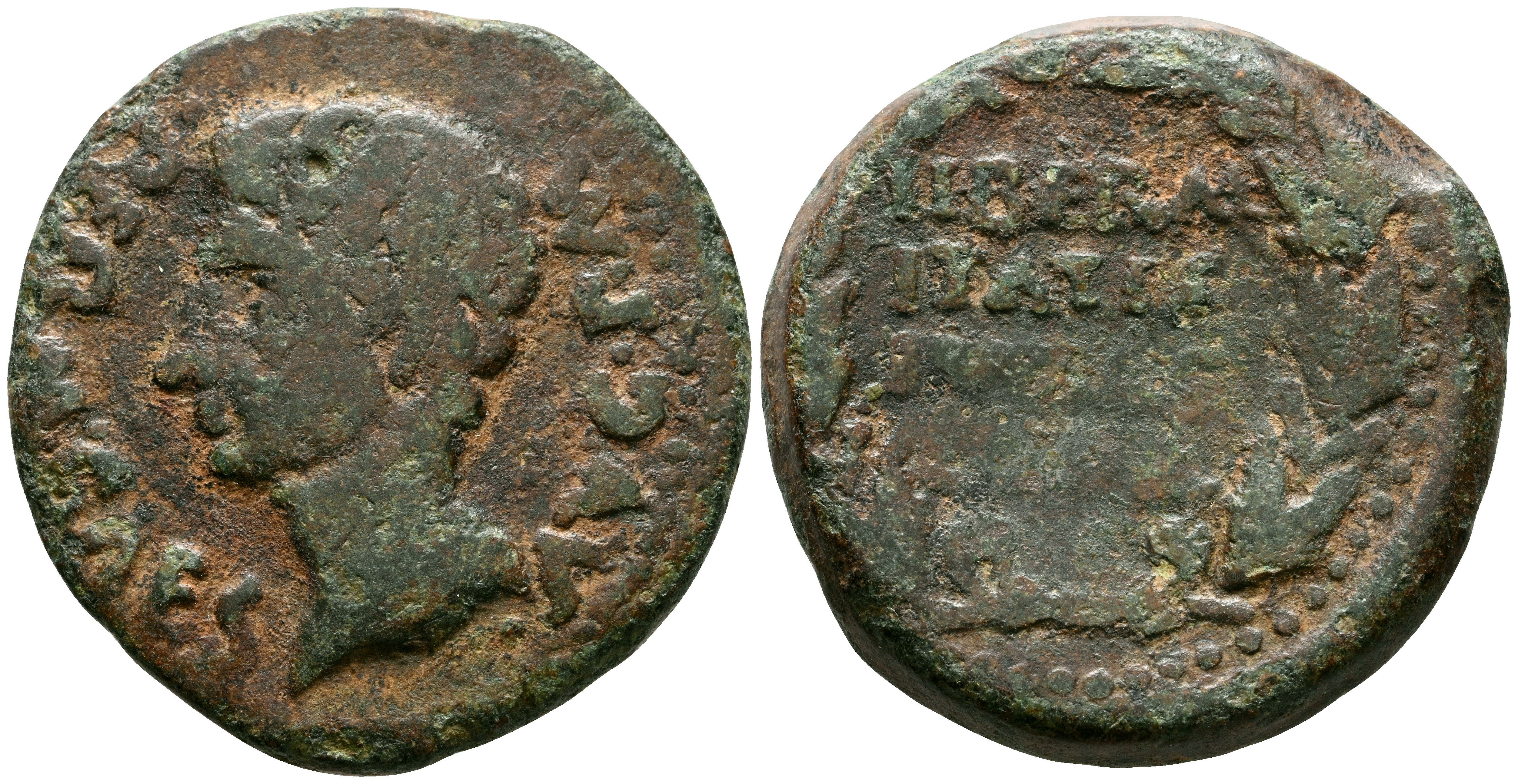 EBORA (Évora, Portugal). As. (Ae. 10,65g/26mm). 27 a.C.-14 d.C. (FAB-901). Anv: Cabeza de Augusto a izquierda, alrededor leyenda: PERM CAES AVG P M. Rev: Láurea, dentro leyenda en cuatro líneas: LIBERALITATIS/IVLIAE/EBOR. BC+.