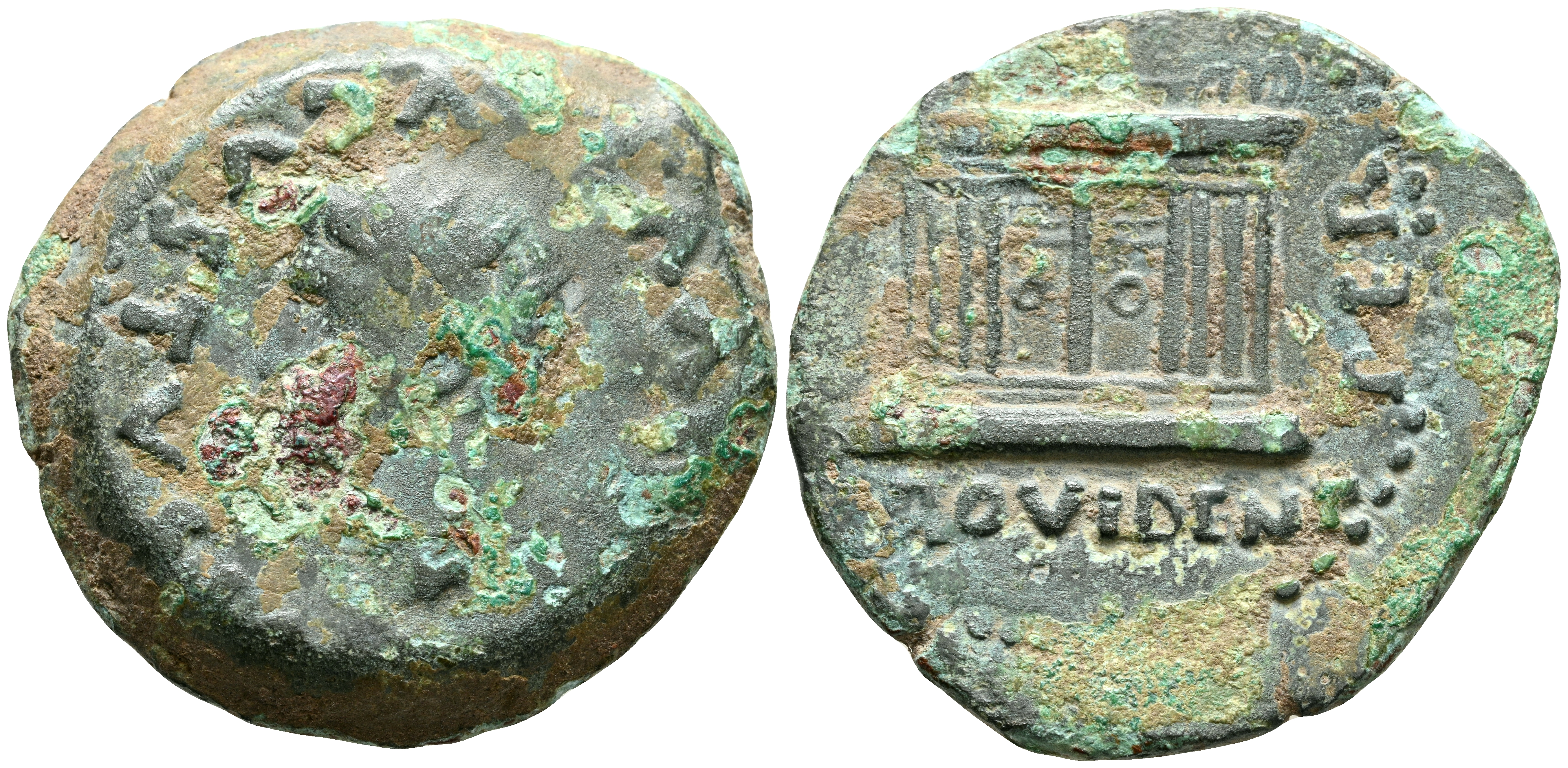 EMERITA AUGUSTA (Mérida, Badajoz). As. (Ae. 12,26g/28mm). 14-36 d.C. (FAB-1052). Anv: Cabeza radiada de Augusto a izquierda, alrededor leyenda: DIVVS AVGVSTVS PATER. Rev: Ara, alrededor leyenda: PER PROVIDENT AVG. MBC-/MBC.