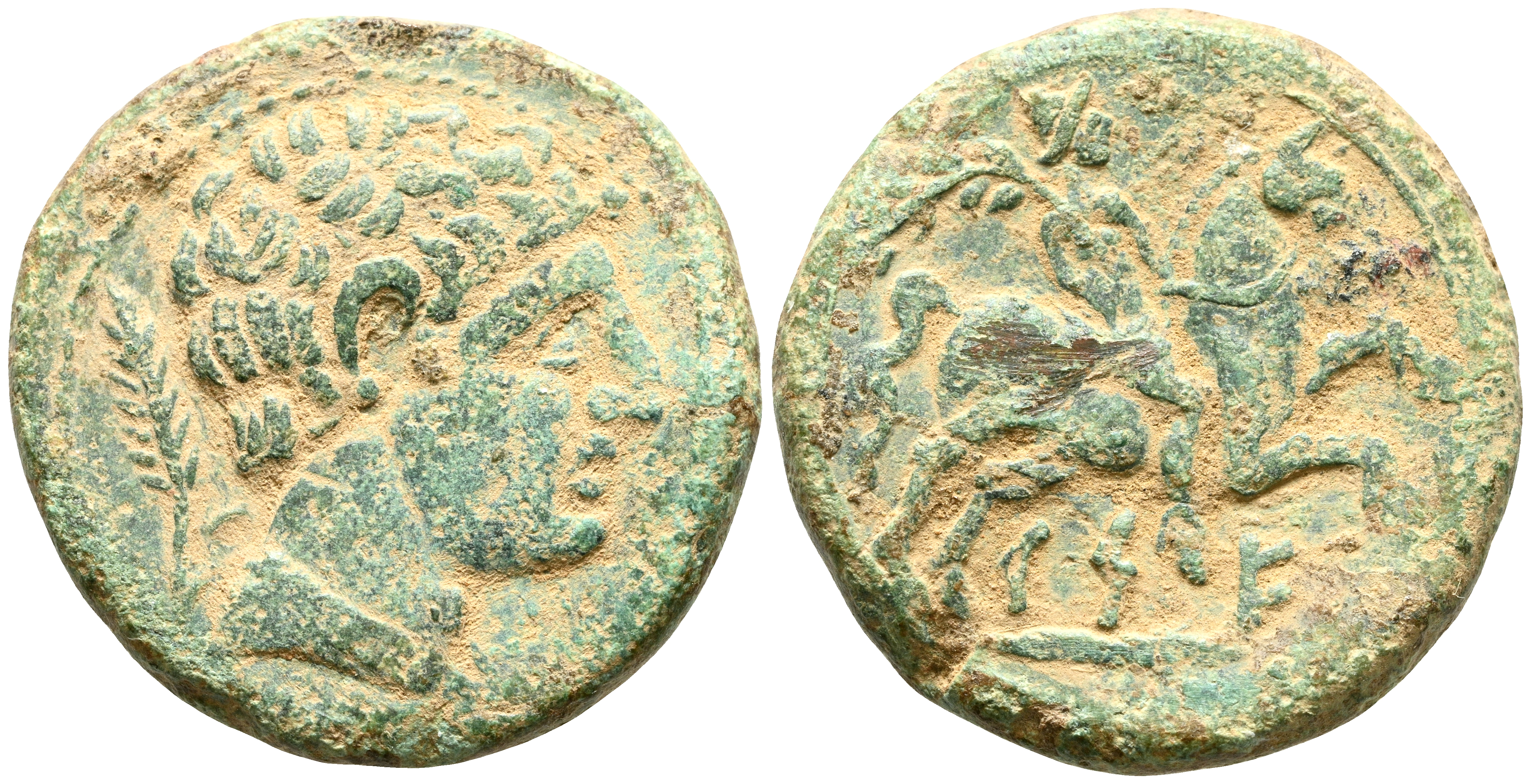 CESE (Tarragona). As. (Ae. 10,43g/26mm). 120-20 a.C. (FAB-2274). Anv: Cabeza masculina a derecha, detrás palma. Rev: Jinete con palma a derecha, debajo leyenda ibérica: CeSE. MBC+. Golpe en reverso.