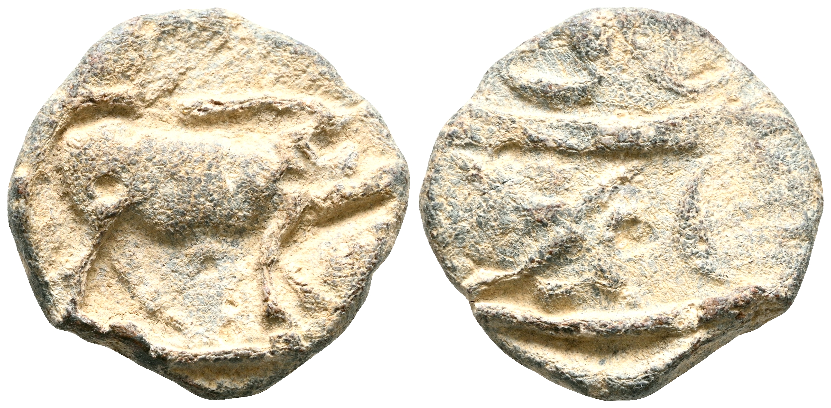 INCIERTO. Plomo monetiforme. (Pb. 2,12g/14mm). (CCP no cita). Anv: Jabalí a derecha. Rev: Símbolos entre líneas. MBC+. Interesante y raro ejemplar.