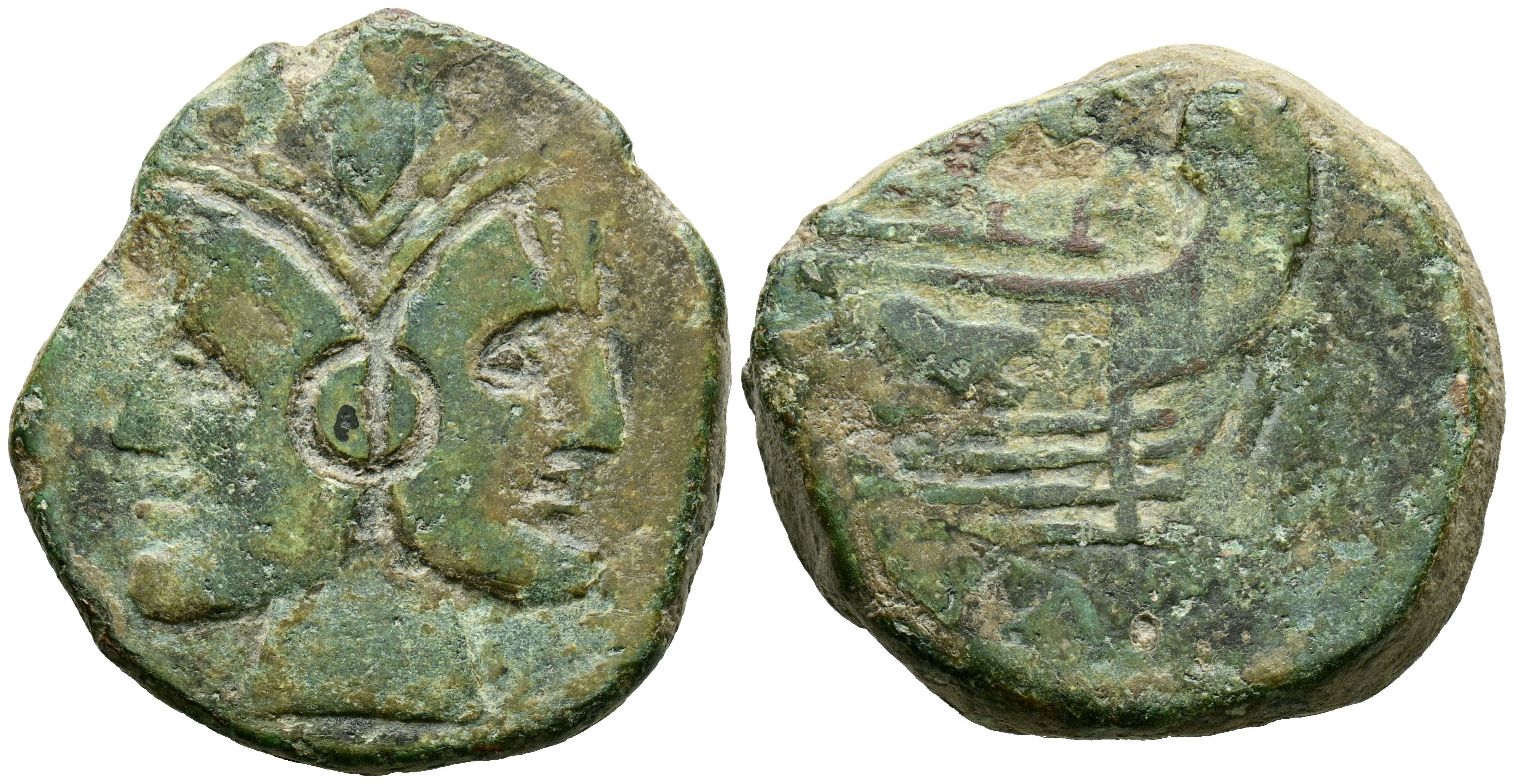 ACUÑACIONES ANONIMAS. As. (Ae. 24,29g/31mm). 211 a.C. Roma. (Crawford 56/2). Anv: Cabeza bifronte laureada de Jano, encima: I. Rev: Proa a derecha, encima: I, debajo leyenda: ROMA. MBC-. Contramarca.