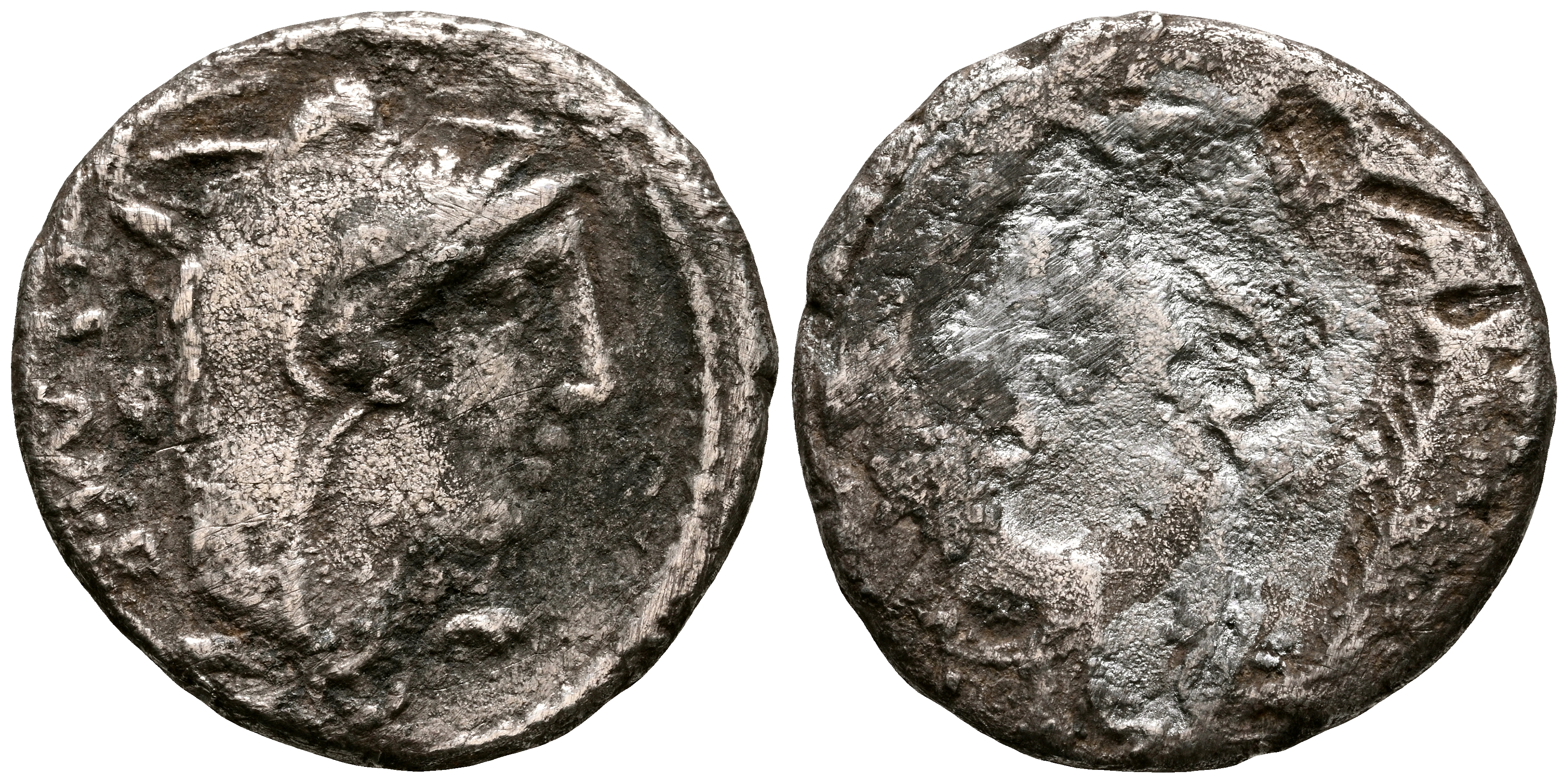 GENS THORIA. Denario. (Ar. 3,15g/18mm). 105 a.C. Norte de Italia. Anv: Busto de Juno Sospita a derecha, cubierta con piel de cabra, detrás ISMR. Rev: Incuso. BC+.