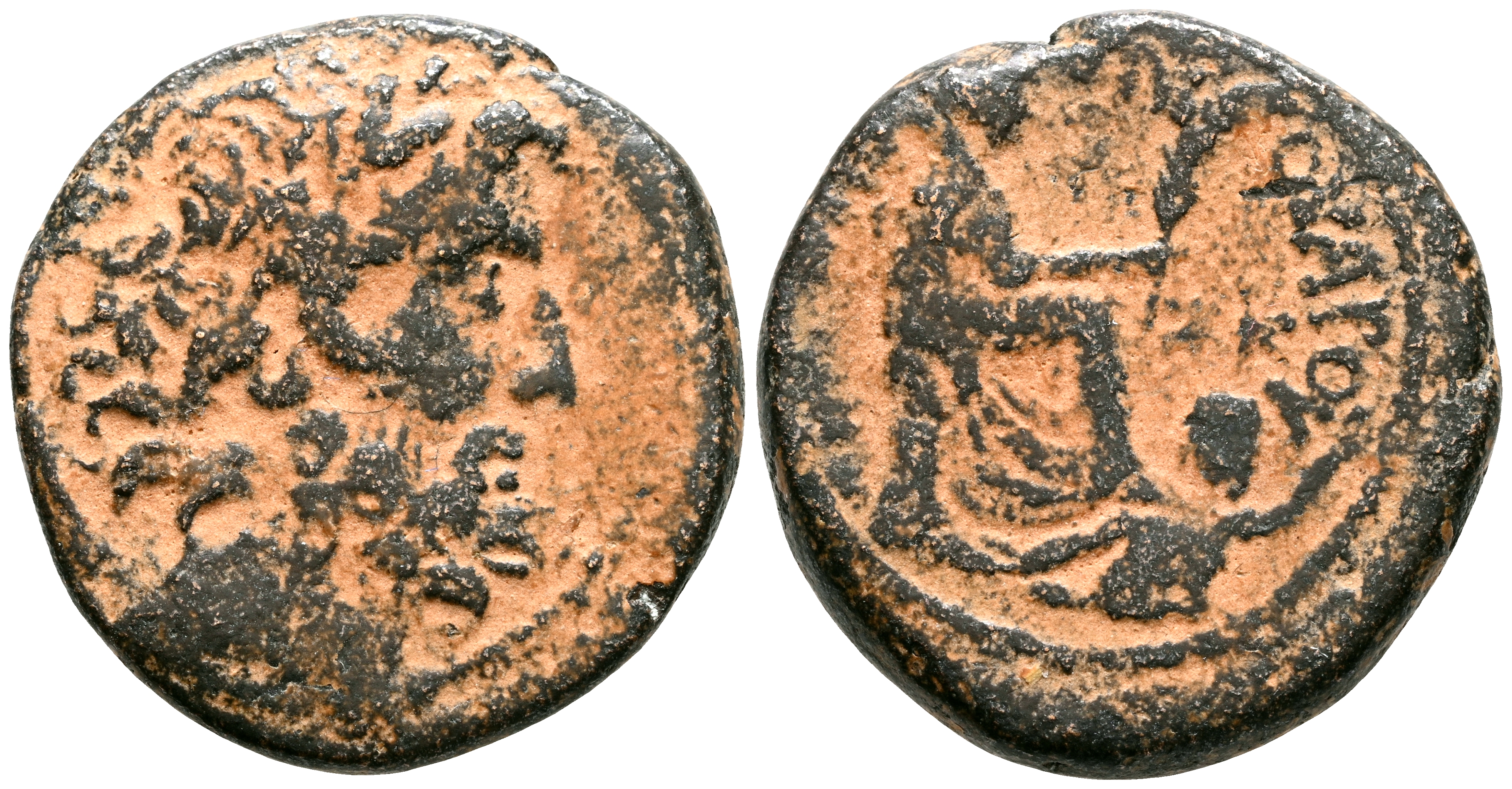 QUINTILIO VARO, Gobernador bajo Augusto. Ae20. (Ae. 6,59g/20mm). 5-4 a.C. Seleucis y Pieria, Antioquía. (McAlee 87a; RPC 4252). Anv: Cabeza laureada de Zeus a derecha. Rev: Tyche sentado a la derecha, sosteniendo una hoja de palma, debajo, el dios de l río Orontes nadando a la derecha, en campo: ZK, alrededor leyenda: ΑΝΤΙΟΧΕΩΝ ΕΠΙ ΟΥΑΡΟΥ. MBC.