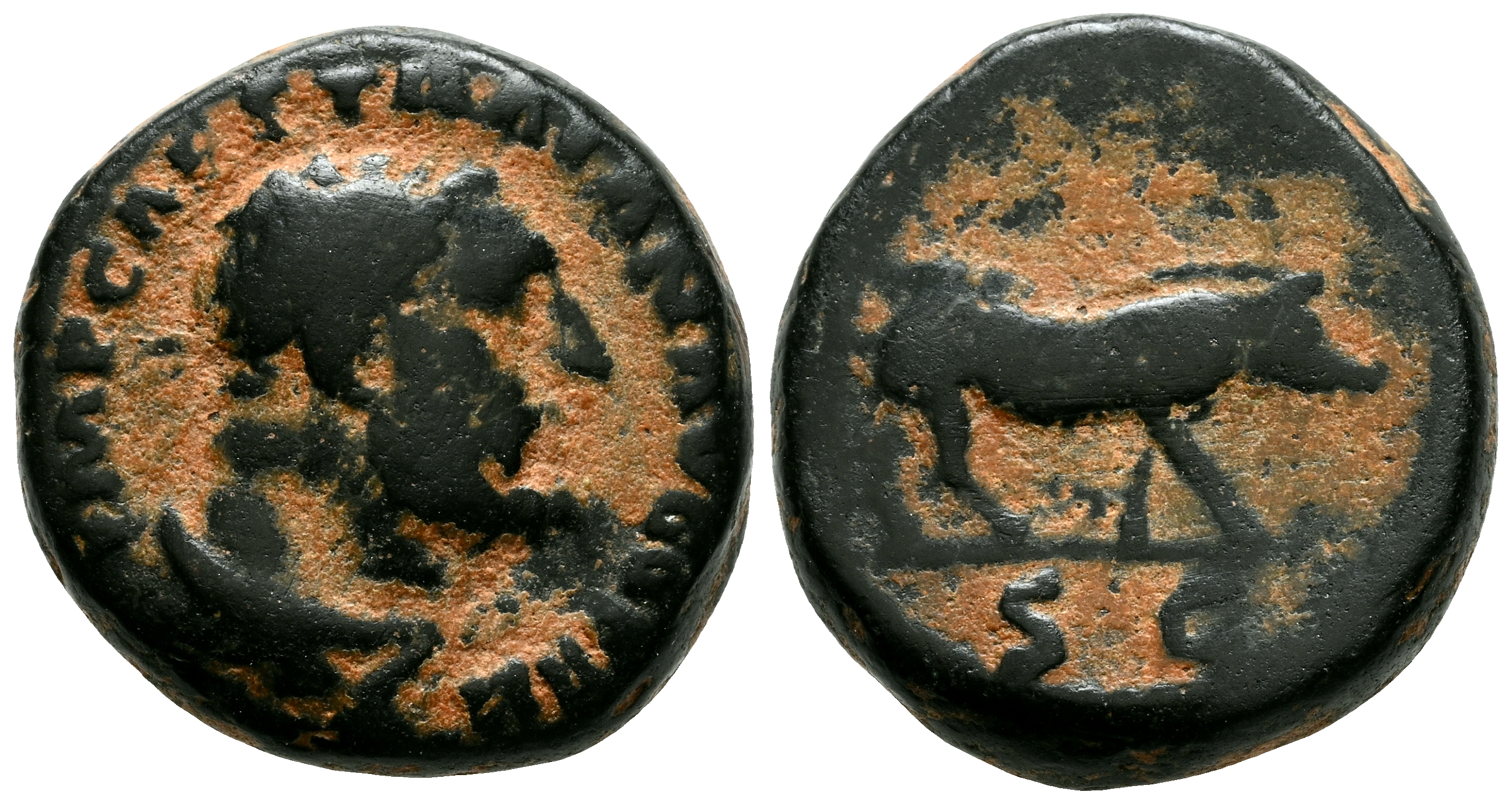 TRAJANO. Cuadrante. (Ae. 3,68g/14mm). 114-117 d.C. Roma. (RIC 691; Cohen 338). Anv: Busto laureado de Trajano a derecha, alrededor leyenda: IMP CAES NERVA TRAIAN AVG. Rev: Loba a derecha, en exergo: SC. MBC-.