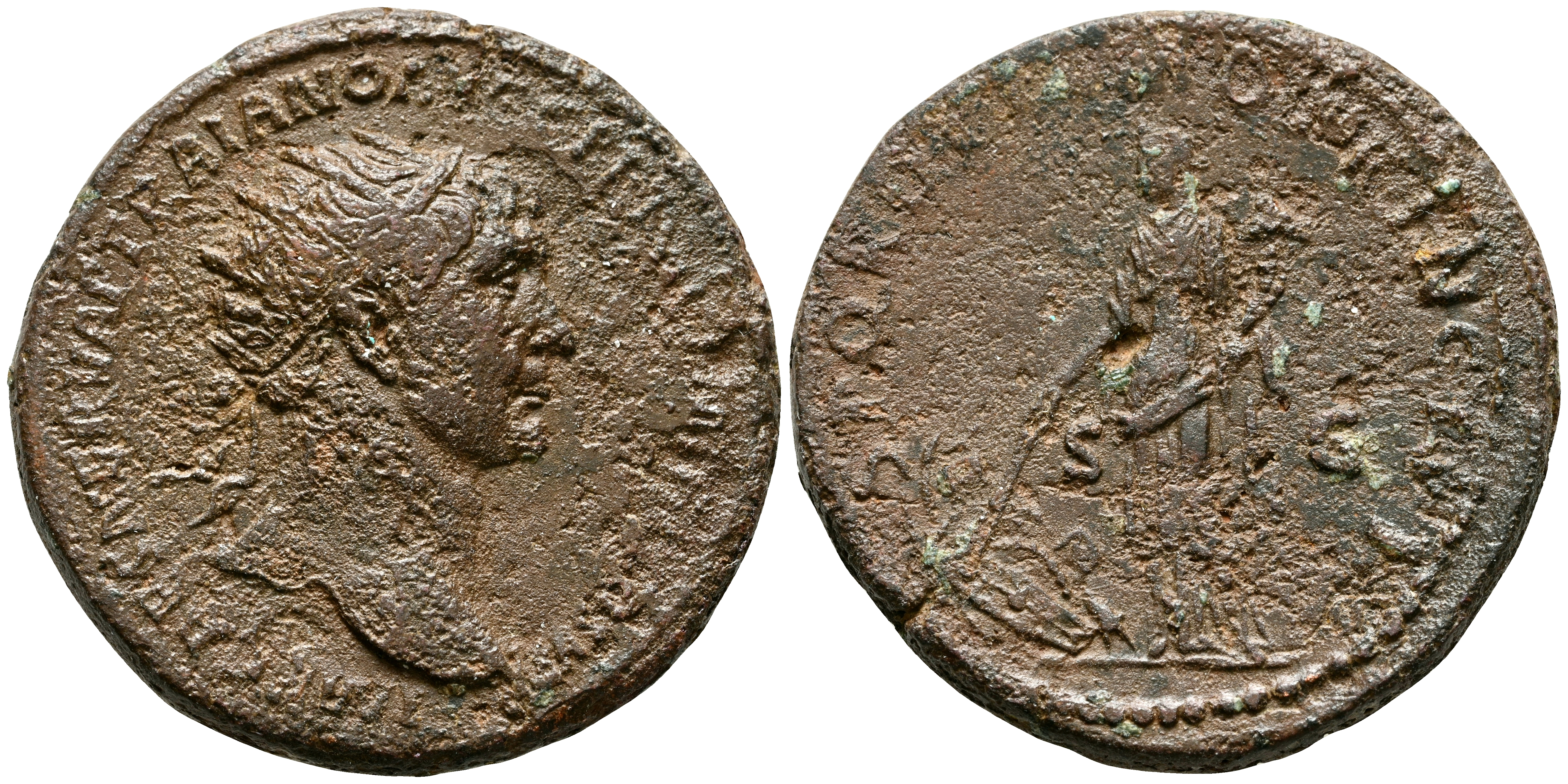 TRAJANO. Dupondio. (Ae. 10,88g/27mm). 108-109 d.C. Roma. (RIC 502). Anv: Busto radiado de Trajano a derecha con ligero drapeado sobre hombro izquierdo, alrededor leyenda: IMP CAES NERVAE TRAIANO AVG GER DAC P M TR P COS V P P. Rev: Fortuna estante a izquierda guiando timón sobre proa y portando cornucopia, entre: S-C, alrededor leyenda: S P Q R OPTIMO PRINCIPI. MBC-.