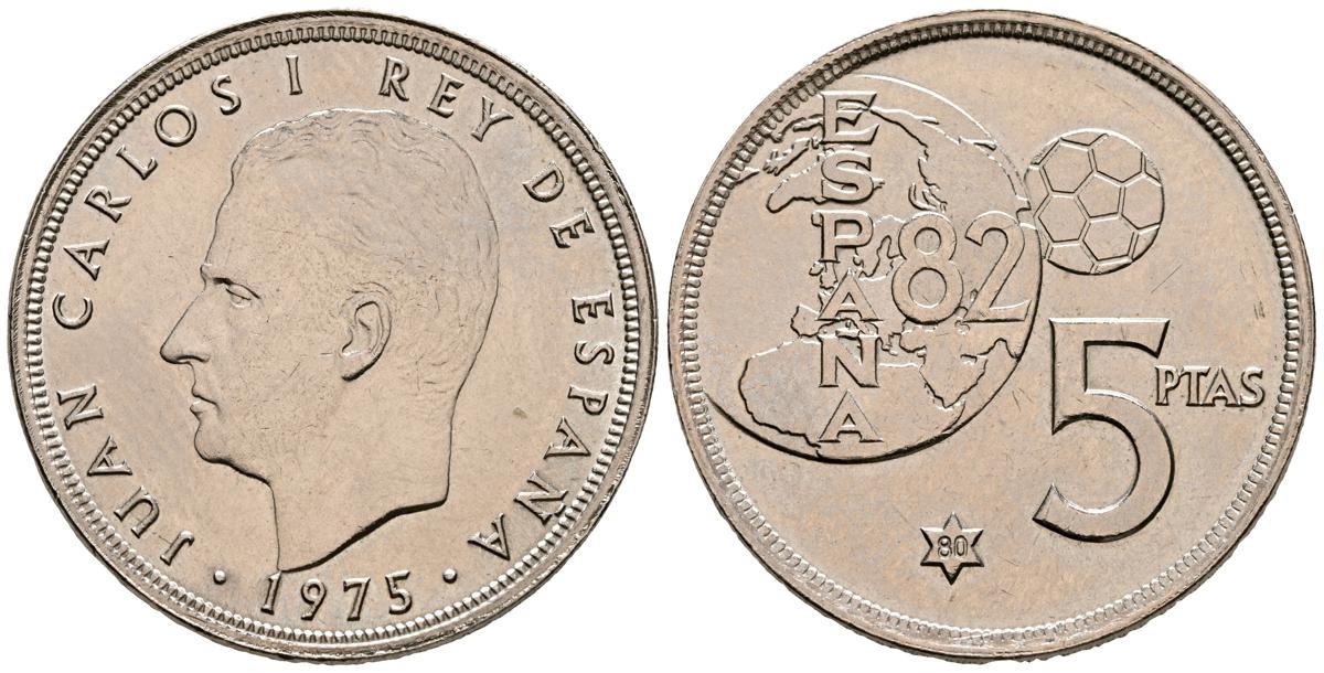 JUAN CARLOS I (1975-2014). 5 Pesetas. (CuNi. 5,73g/23mm). 1975 *80. (Cal-2019-40). Error del Mundial ´82. SC.
