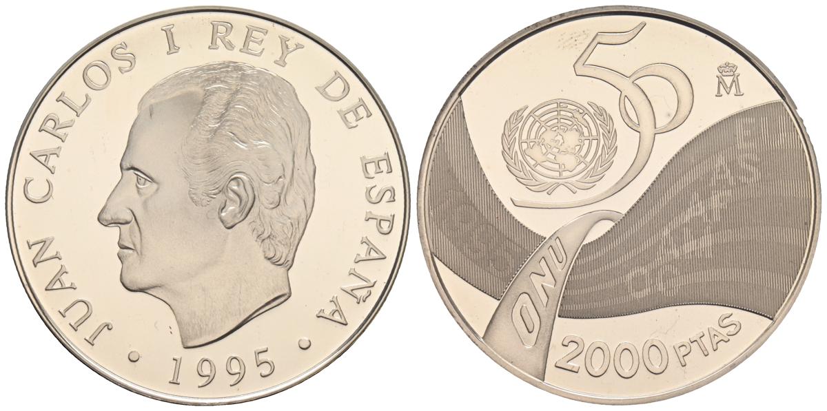 JUAN CARLOS I (1975-2014). 2000 Pesetas. (Ar. 27,00g/40mm). 1995. FNMT. 50 Aniversario de la ONU. PROOF. Incluye estuche original y certificado de autenticidad.