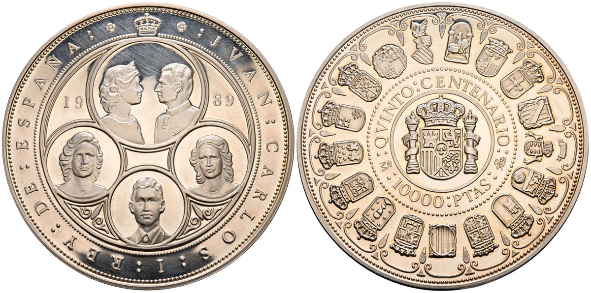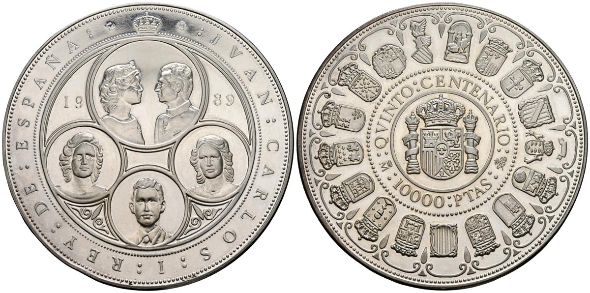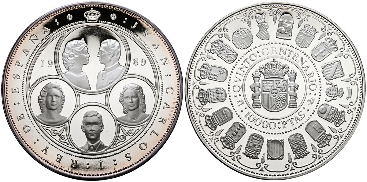 JUAN CARLOS I (1975-2014). 10.000 Pesetas. (Ar. 168,75g/73mm). 1989. FNMT. Serie Quinto Centenario. Serie I. FDC. Incluye estuche original y certificado de autenticidad.