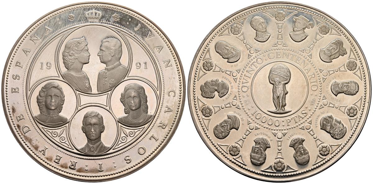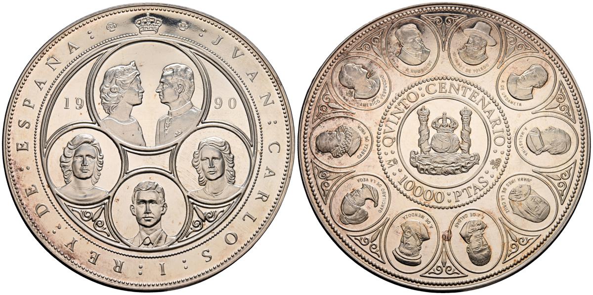JUAN CARLOS I (1975-2014). 10.000 Pesetas. (Ar. 168,73g/73mm). 1990. FNMT. Serie Quinto Centenario. Serie II. SC.