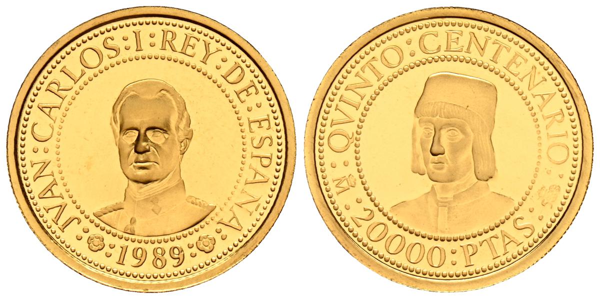 JUAN CARLOS I (1975-2014). 20.000 Pesetas. (Au. 6,75g/23mm). Quinto Centenario. Serie I. 1989. FNMT. PROOF. Presentada en estuche oficial y con certificado de autenticidad.
