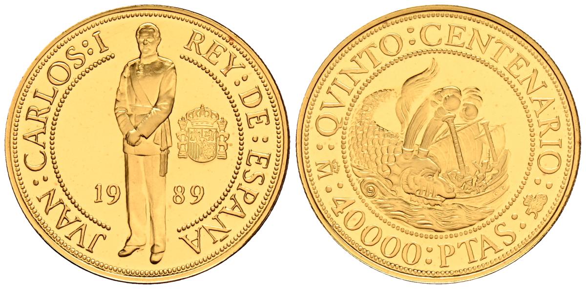 JUAN CARLOS I (1975-2014). 40.000 Pesetas. (Au. 13,50g/30mm). Quinto Centenario. Serie I. 1989. FNMT. PROOF. Presentada en estuche oficial y con certificado de autenticidad.